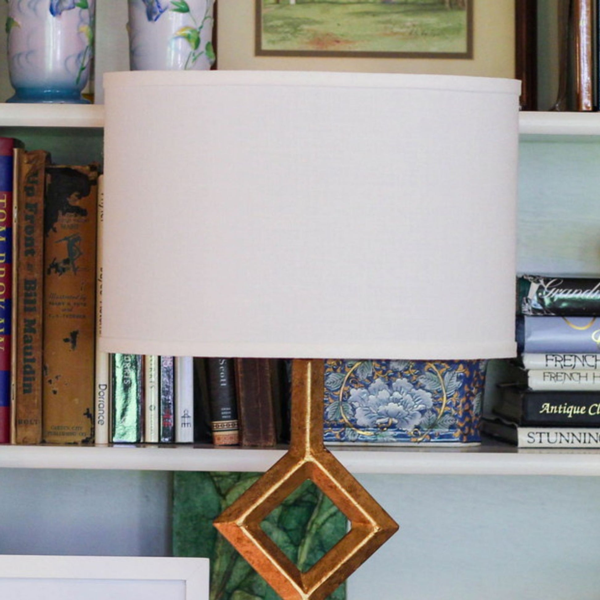 Slant Retro Oval Hardback Lampshade With Washer Fitter, White White Linen