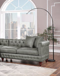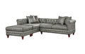 Slate Gray 3Pc Sectional Set 2X Reversible Loveseat Chaise And 1X Ottoman Tufted Couch Pillows Light Slate Grey Faux Leather Wood Primary Living Space Tight Back Contemporary,Luxury,Traditional L