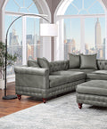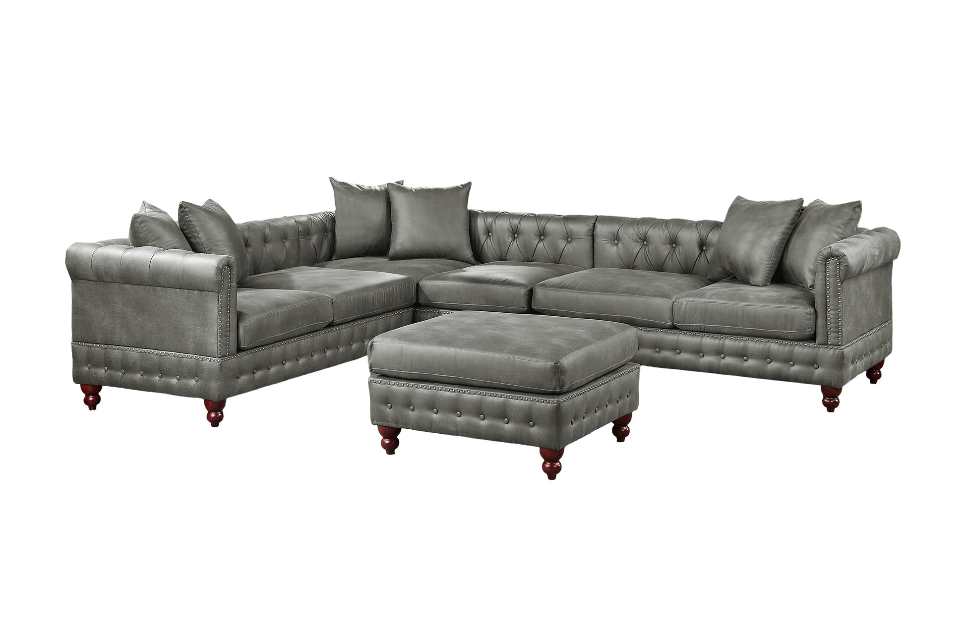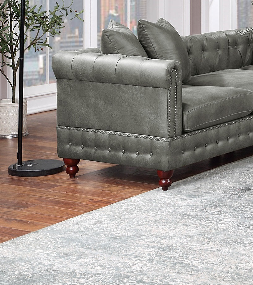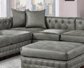 Slate Grey 4Pc Sectional Set 3X Reversible Loveseat Chaise And 1X Ottoman Tufted Couch Pillows Light Slate Grey Faux Leather Wood Primary Living Space Tight Back Contemporary,Luxury,Traditional