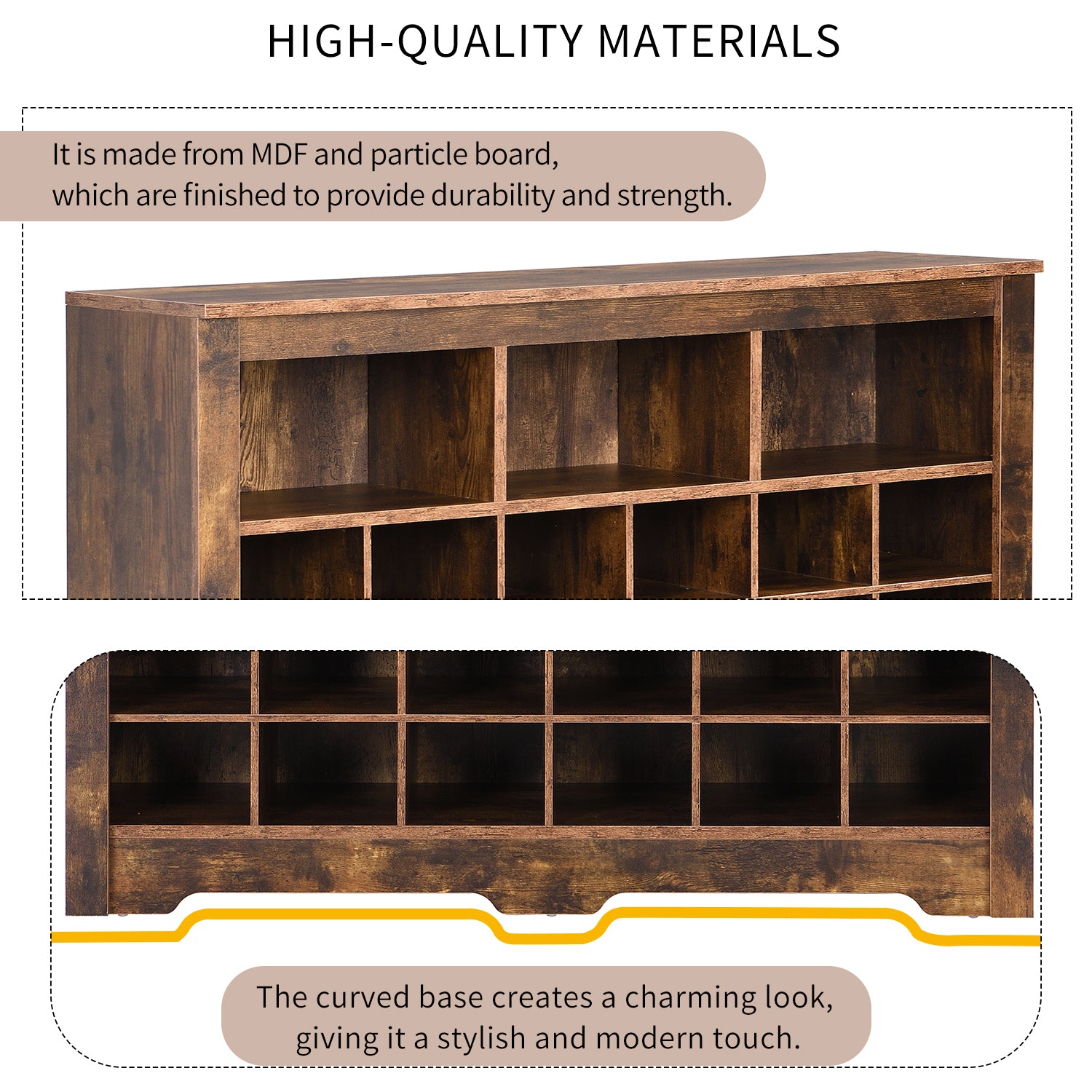 Sleek Design 24 Shoe Cubby Console, Modern Shoe Cabinet With Curved Base, Versatile Sideboard With High Quality For Hallway, Bedroom, Living Room, Rustic Brown Freestanding Rustic Brown Primary Living Space Particle Board