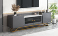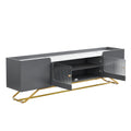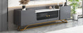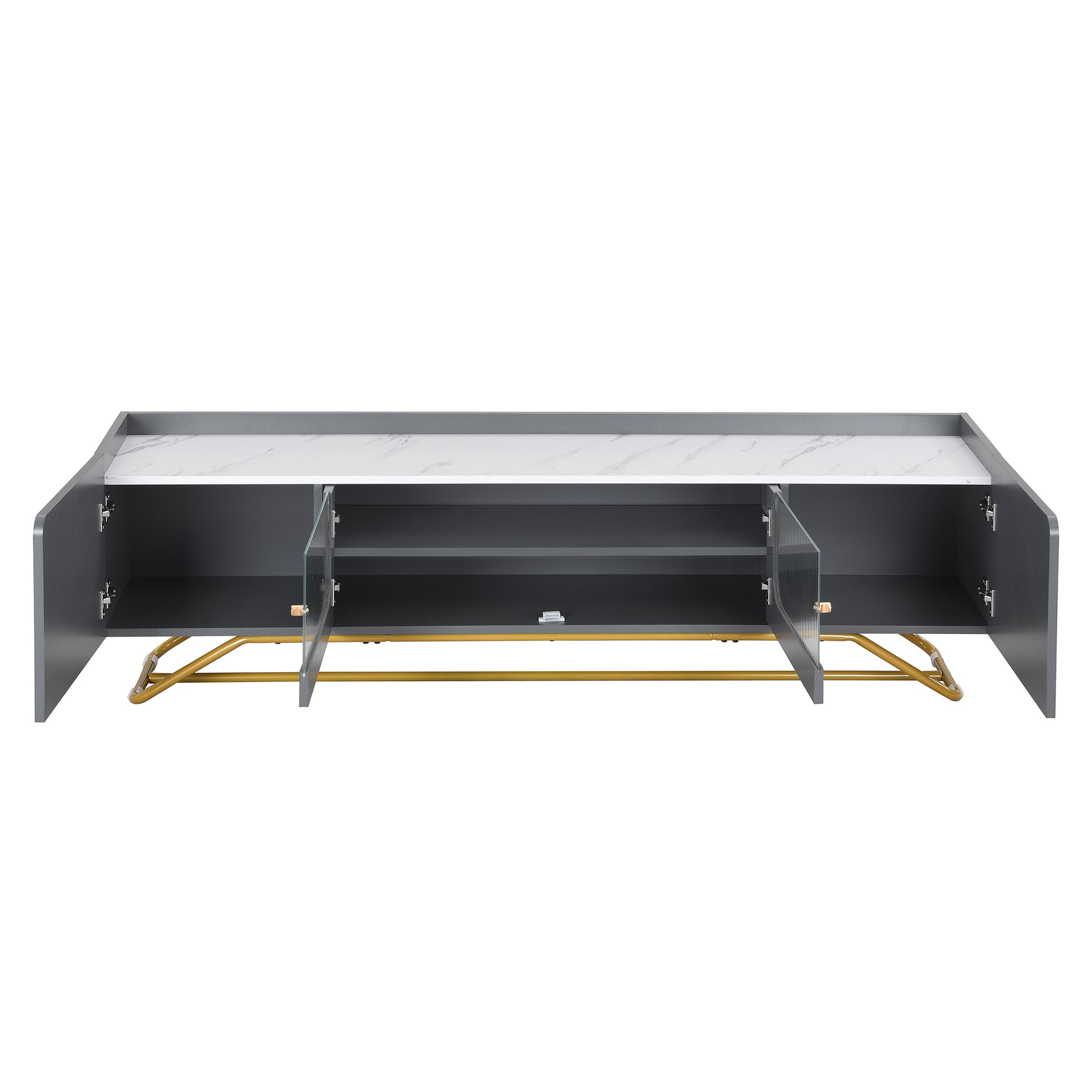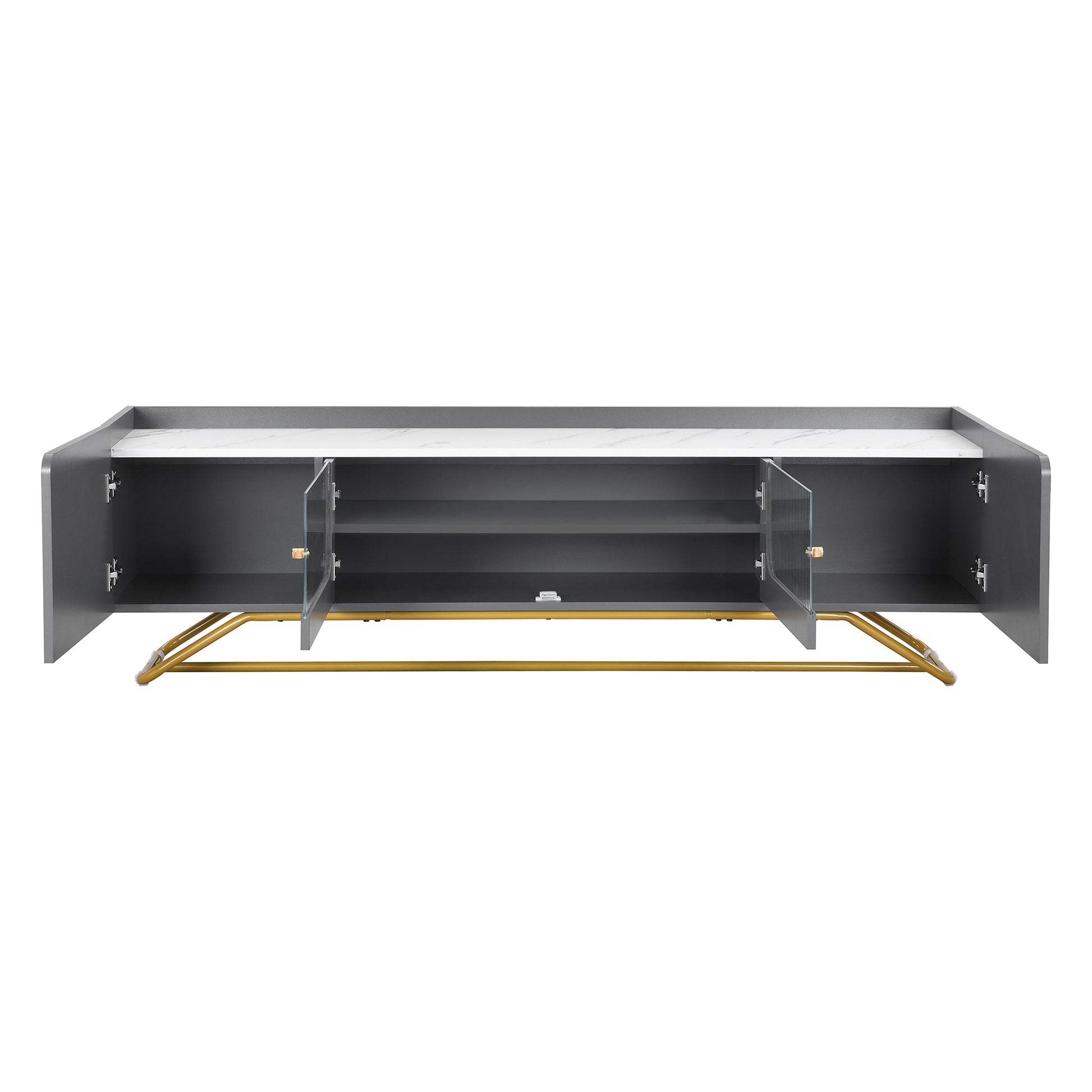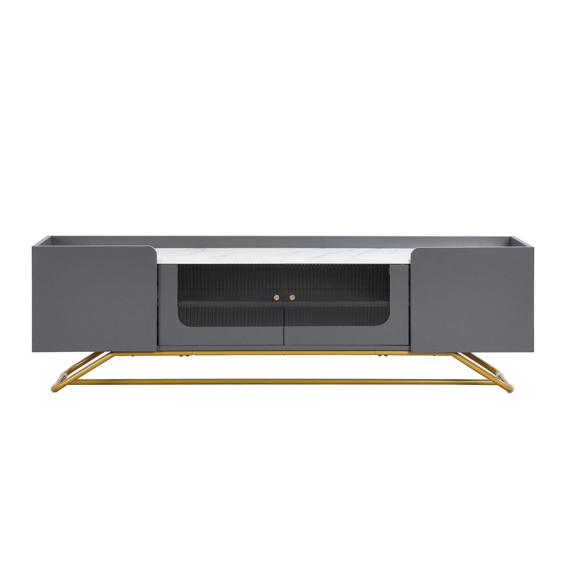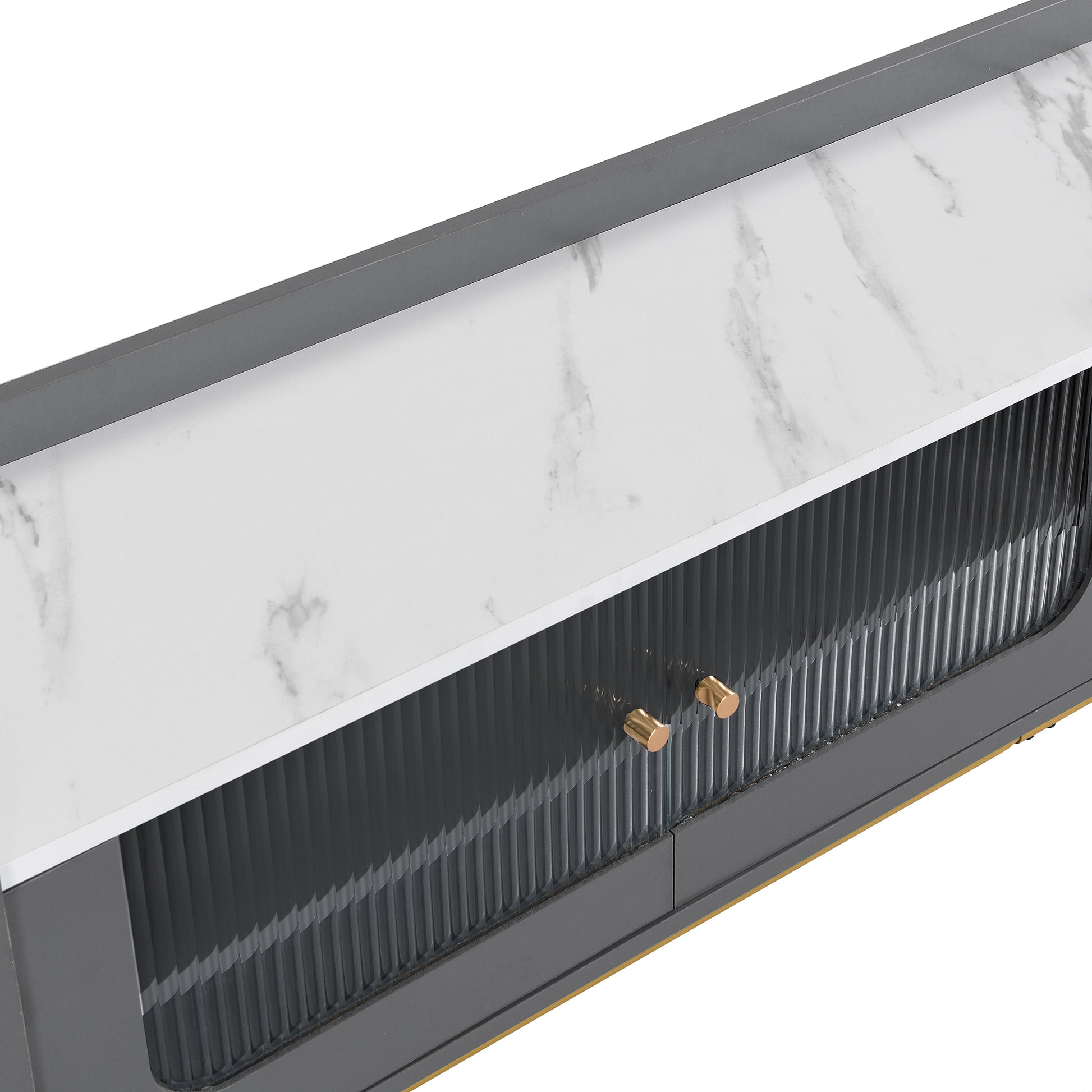 Sleek Design Tv Stand With Fluted Glass, Contemporary Entertainment Center For Tvs Up To 70", Faux Marble Top Tv Console Table With Gold Frame Base, Grey Grey Primary Living Space 70 79 Inches 70 79 Inches Modern 70 Inches Particle Board