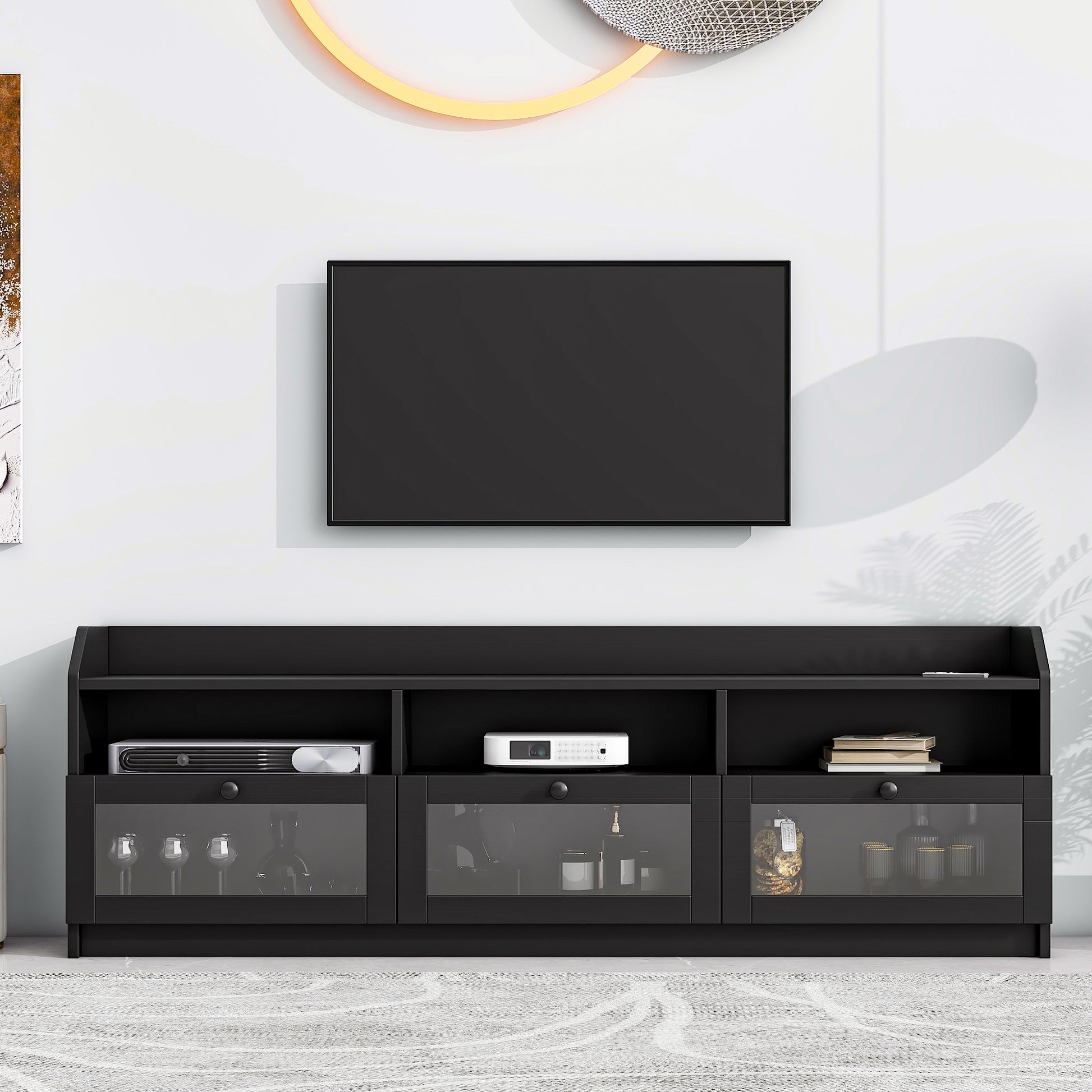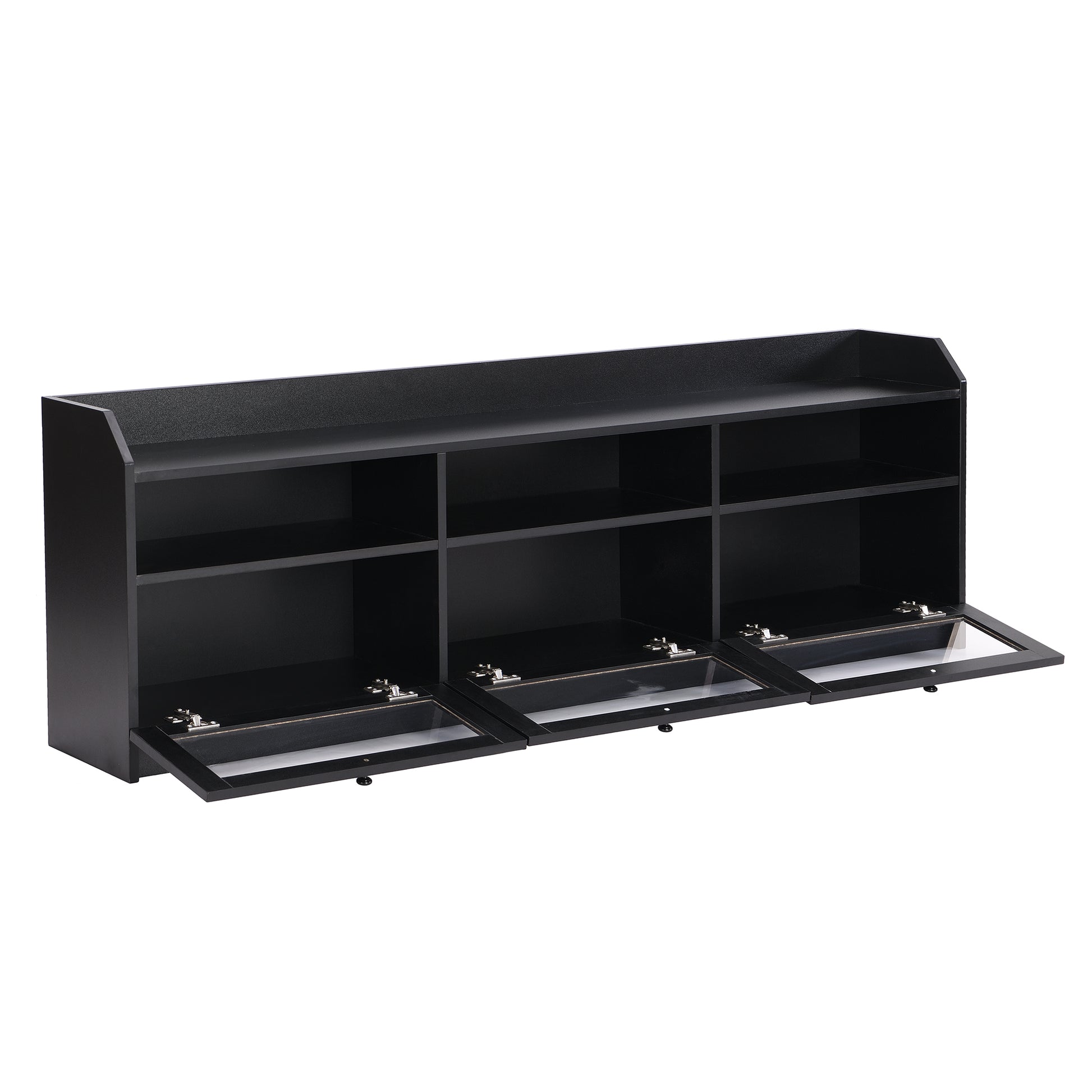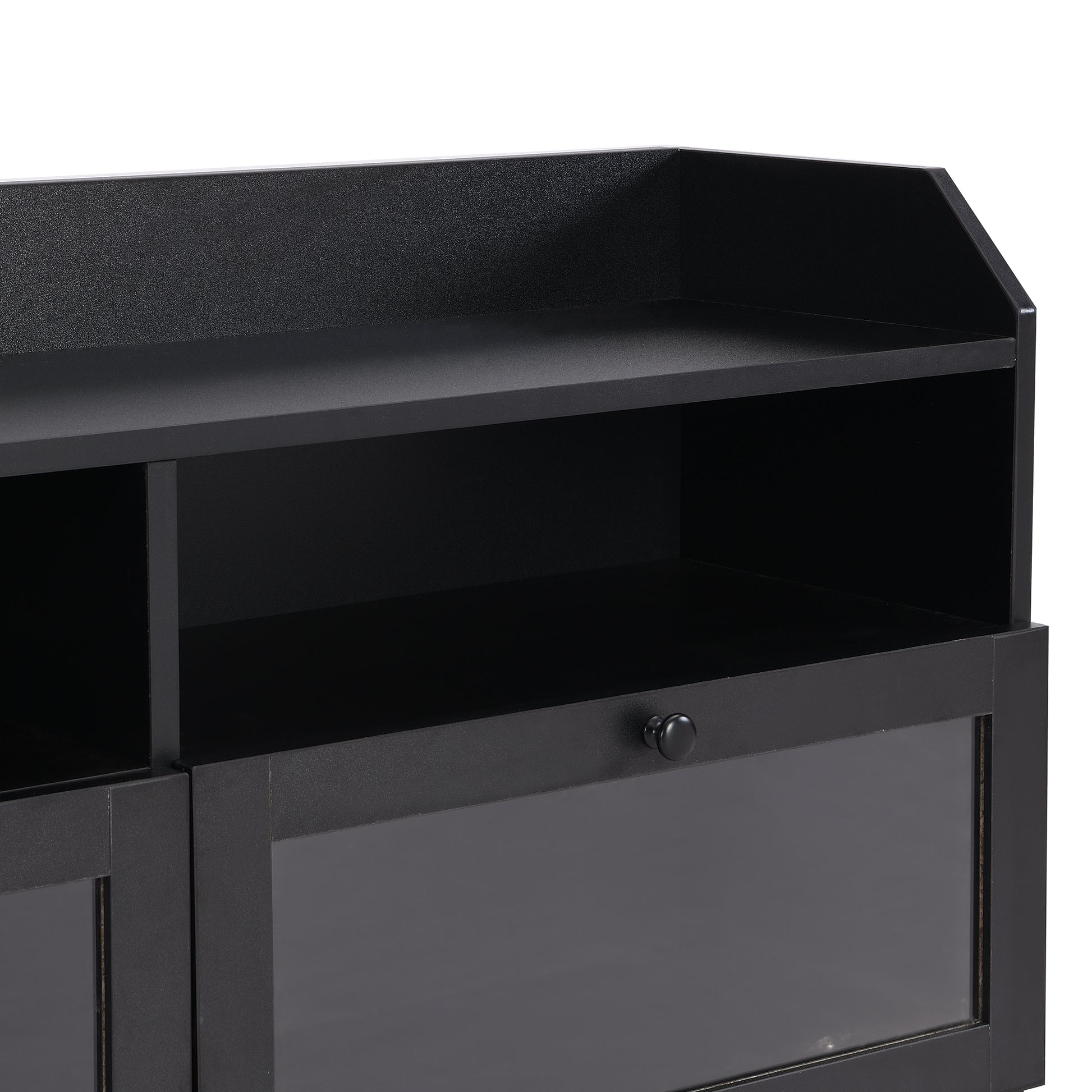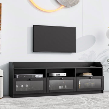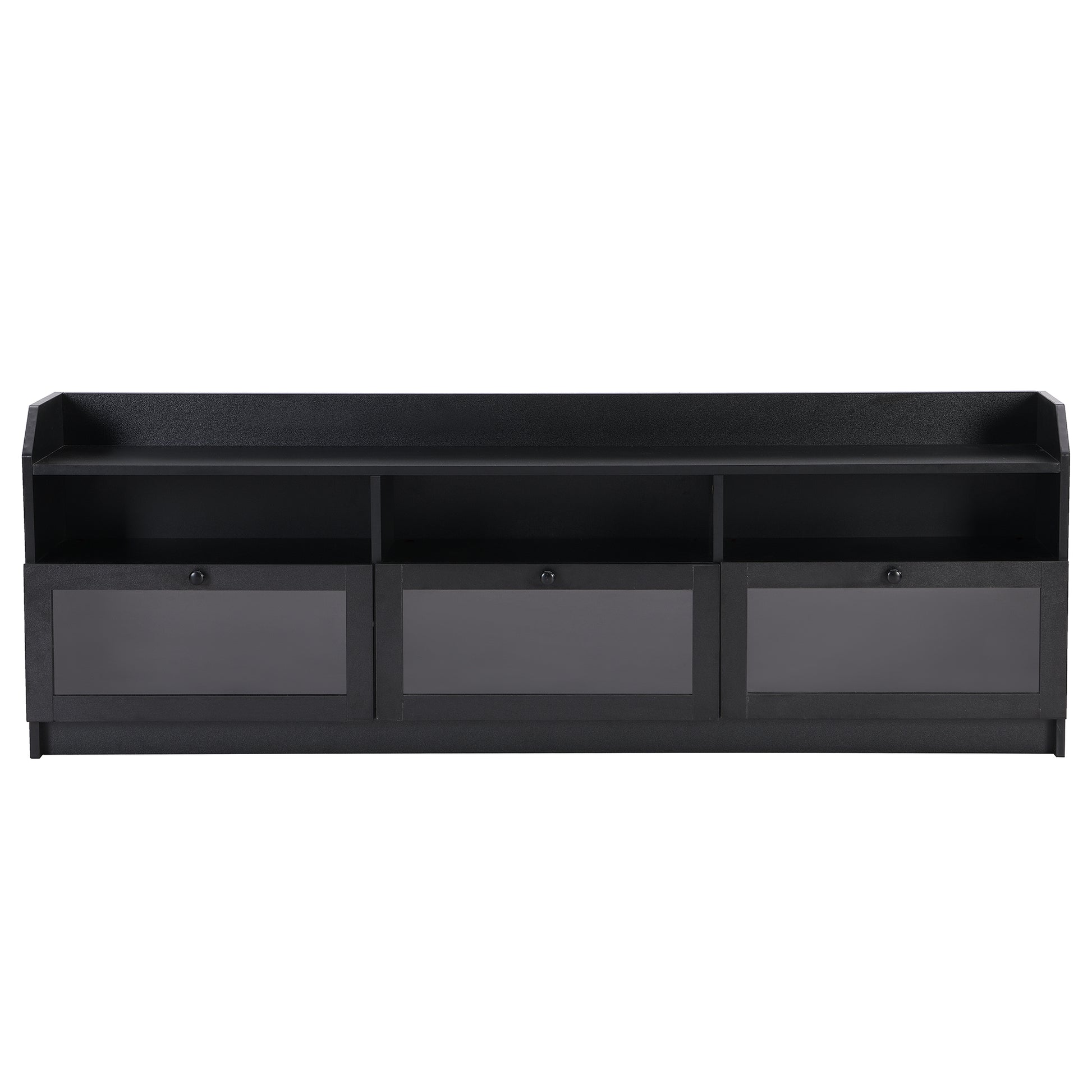 Sleek & Modern Design Tv Stand With Acrylic Board Door, Chic Elegant Media Console For Tvs Up To 65", Large Storage Space Tv Cabinet With Black Handles, Black Black Primary Living Space 60 69 Inches 60 69 Inches 65 Inches Particle Board