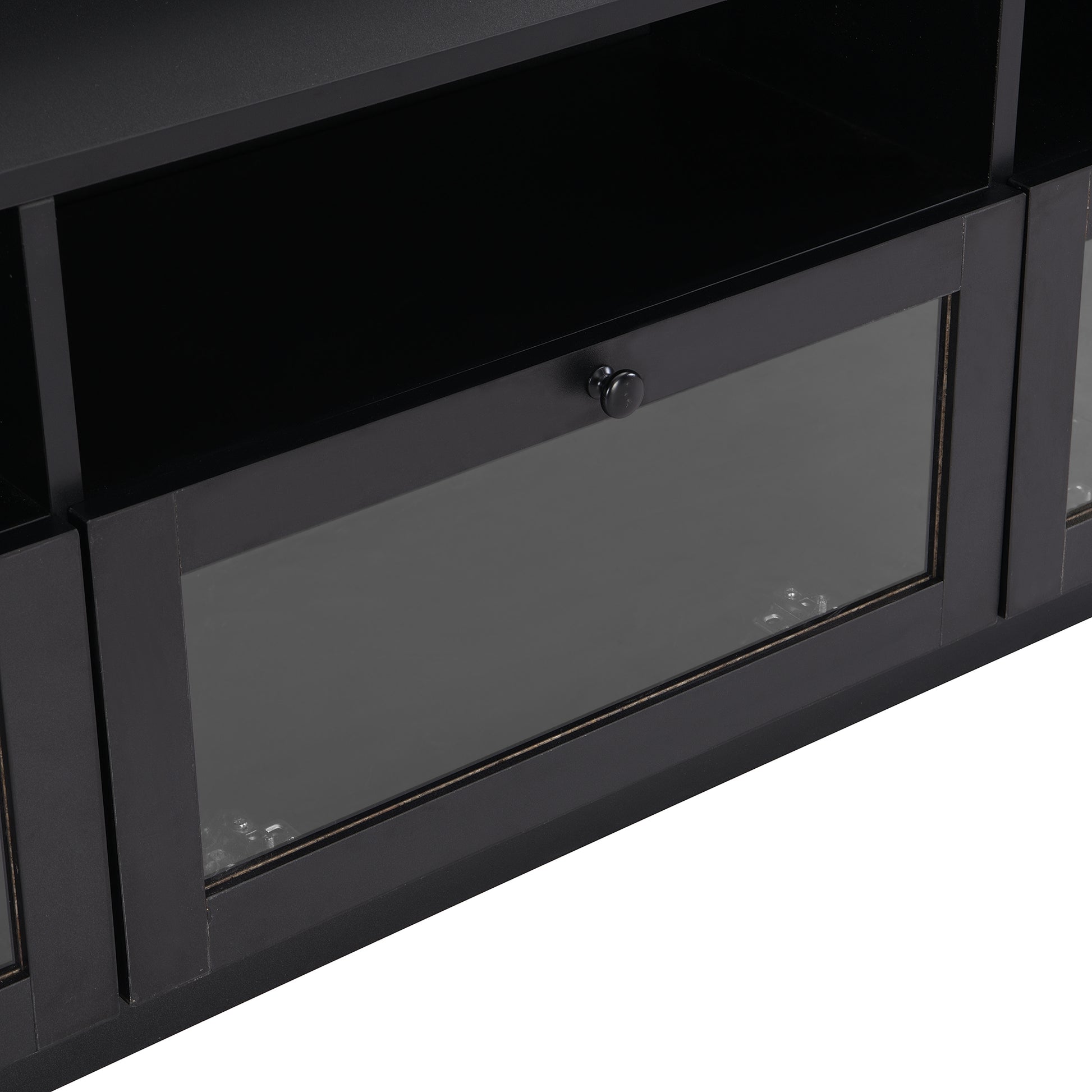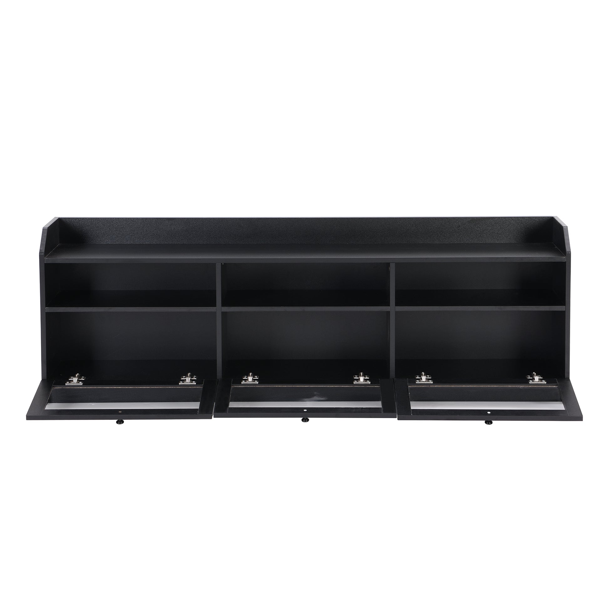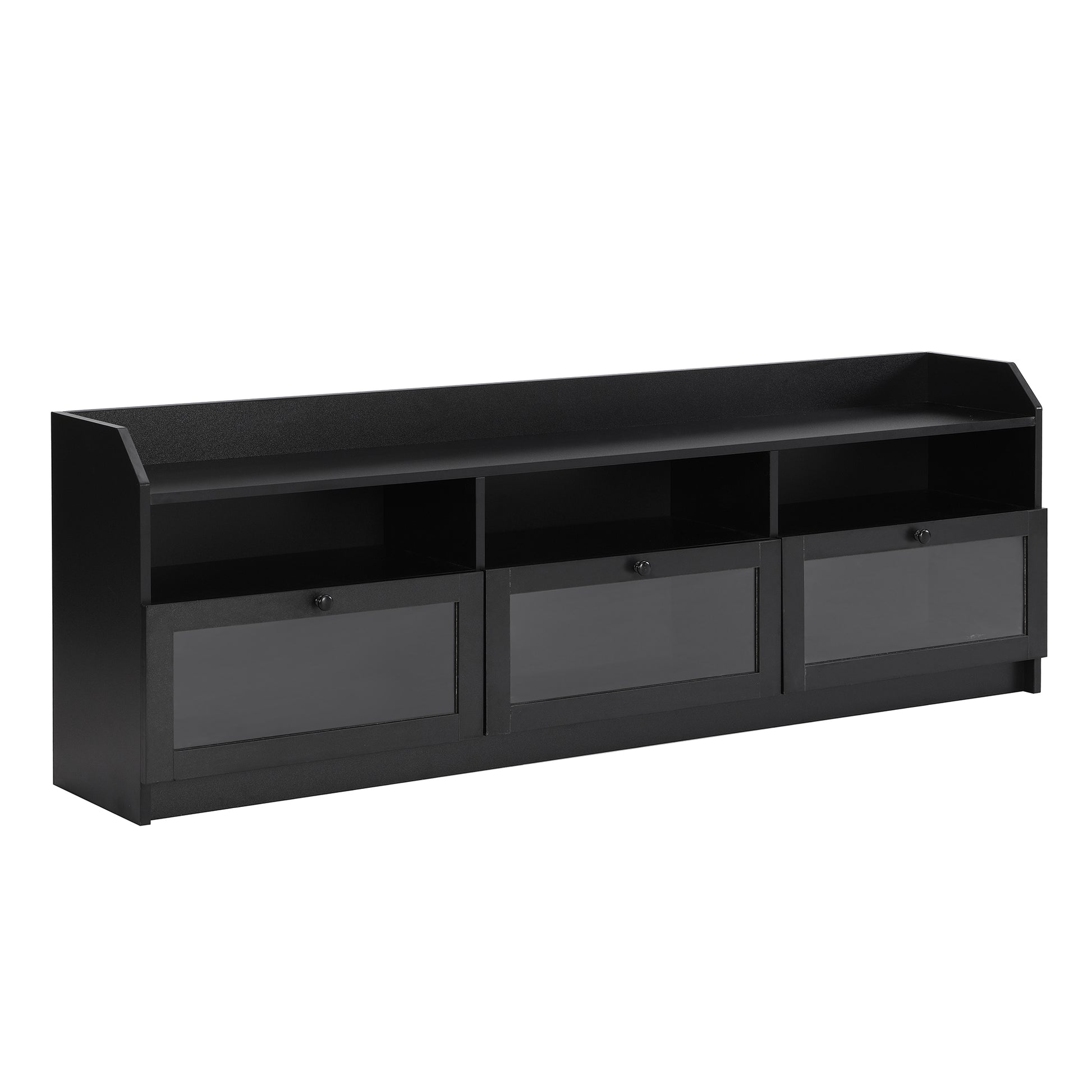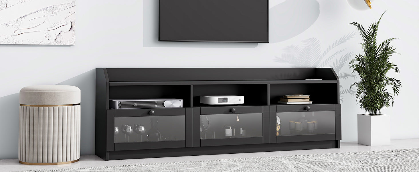 Sleek & Modern Design Tv Stand With Acrylic Board Door, Chic Elegant Media Console For Tvs Up To 65", Large Storage Space Tv Cabinet With Black Handles, Black Black Primary Living Space 60 69 Inches 60 69 Inches 65 Inches Particle Board