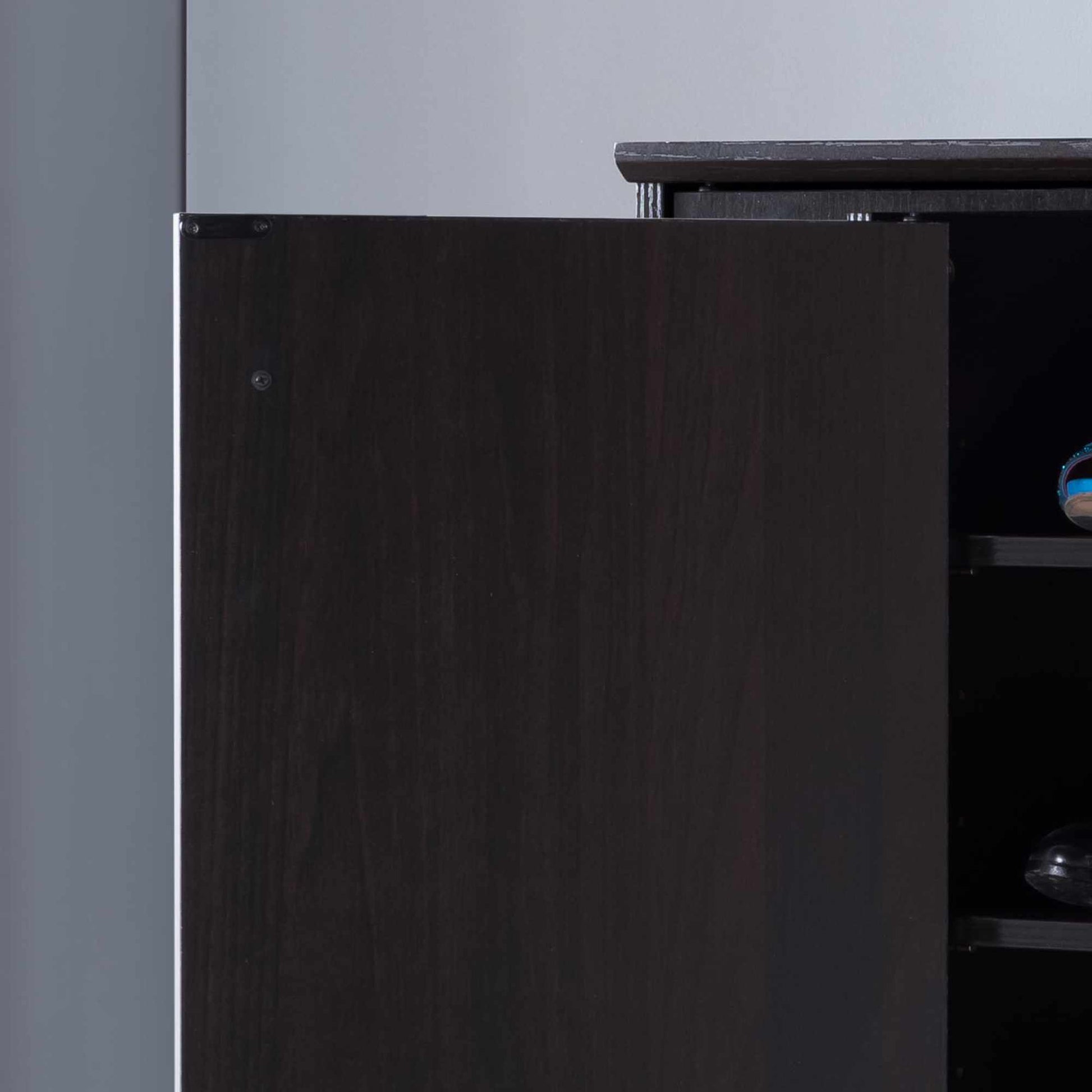 Sleek Red Cocoa 2 Door Shoe Cabinet With 5 Interior Shelves For Storage Dark Brown Mdf