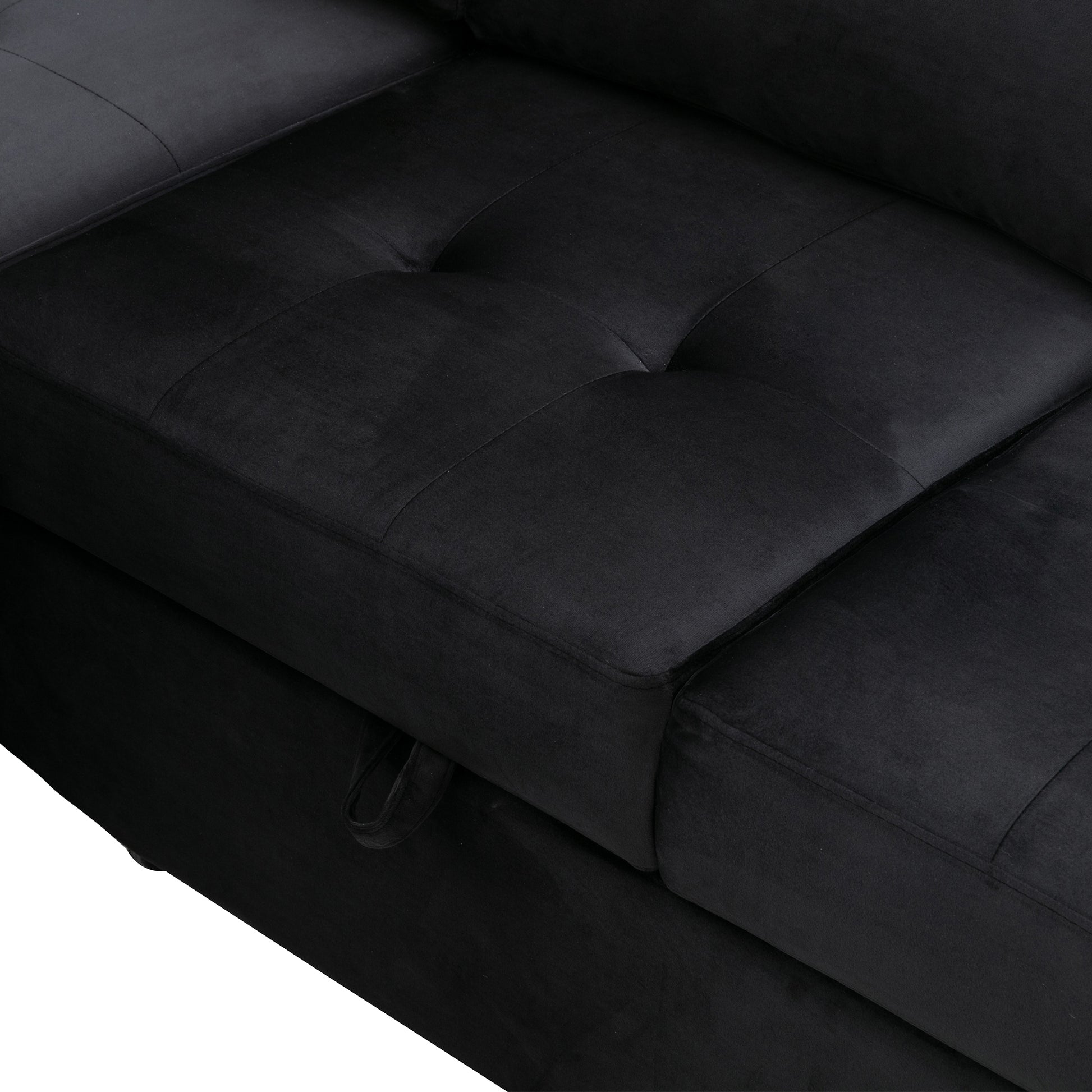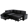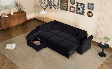 Sleeper Sectional Sofa, L Shape Corner Couch Sofa Bed With Storage Ottoman & Hidden Arm Storage & Usb Charge For Living Room Apartment, Black Black Velvet 4 Seat