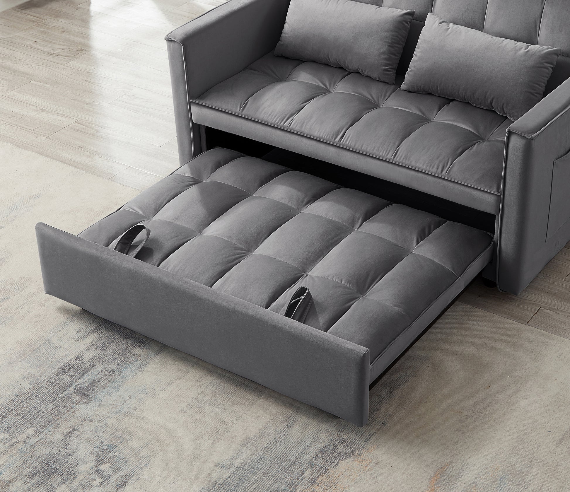 Sleeper Sofa Bed W Usb Port, 3 In 1 Adjustable Sleeper With Pull Out Bed, 2 Lumbar Pillows And Side Pocket, Soft Velvet Convertible Sleeper Sofa Bed, Suitable For Living Room Bedroom Dark Gray