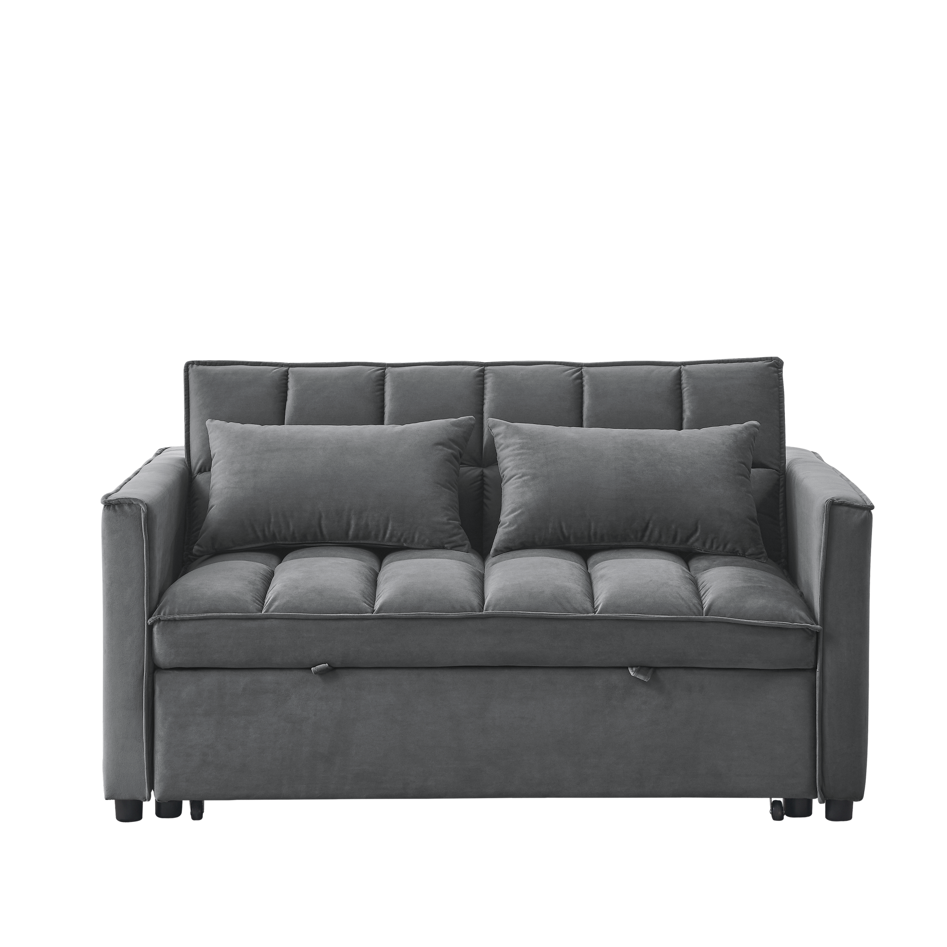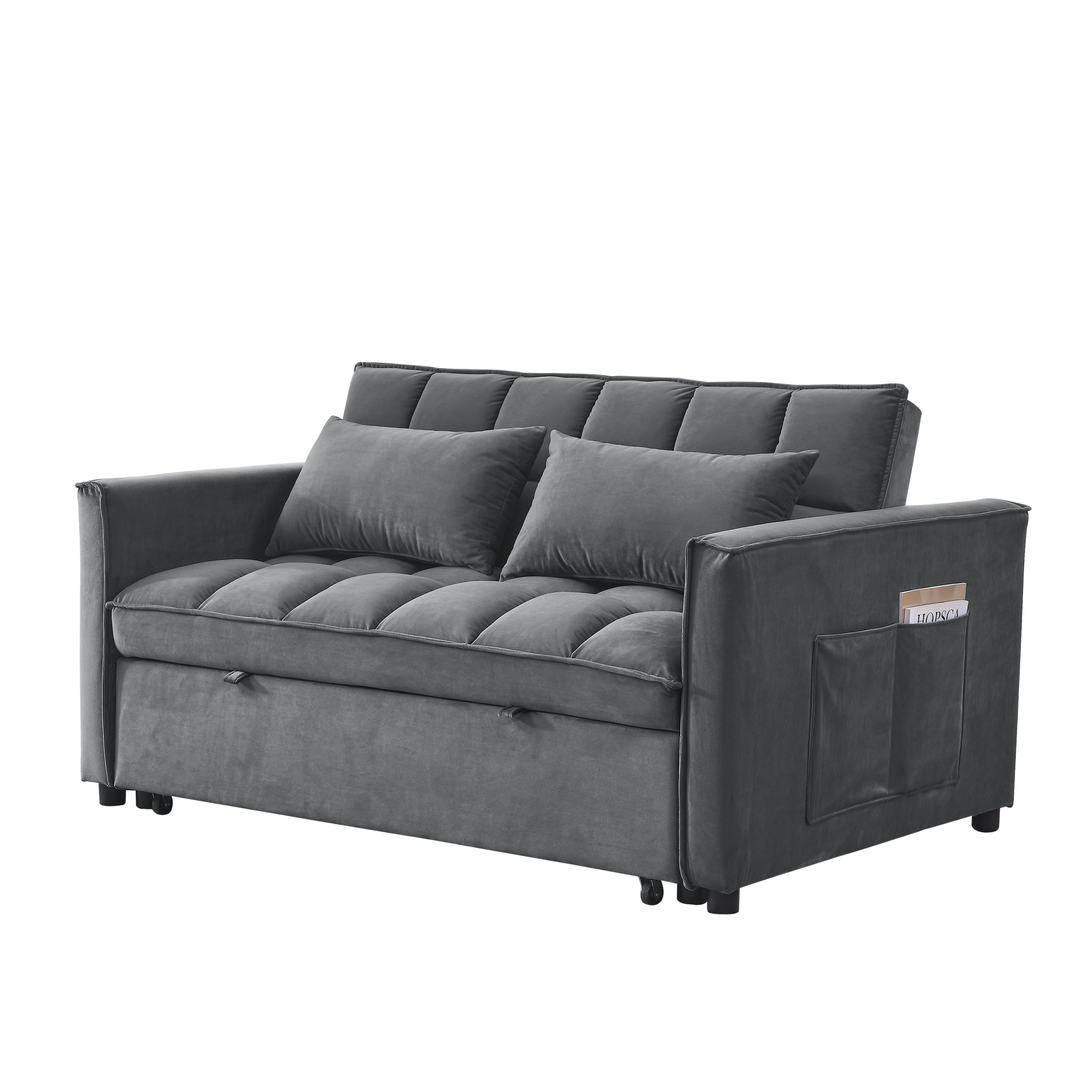 Sleeper Sofa, Convertible Sofa, Recliner, Bed, 3 In 1, 3 Position Adjustable Backrest, 2 Seater Sectional, Two Side Pockets, 2 Pillows For Living Room, Apartment, Etc., Velvet Beige 54" Wide. Grey Foam Velvet 2 Seat