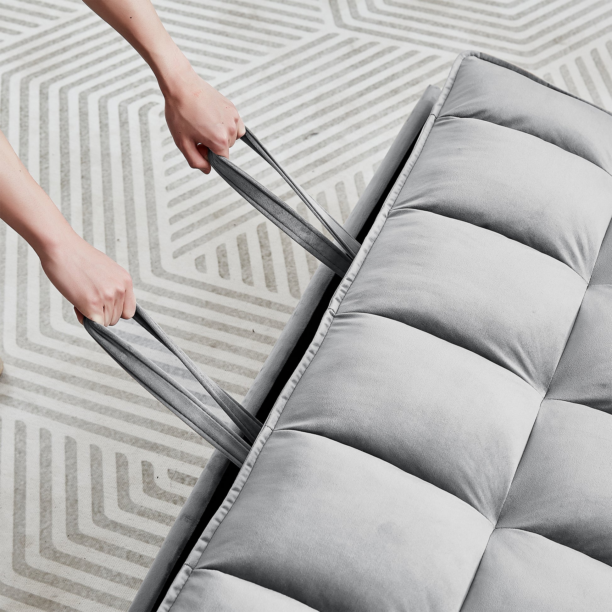 Sleeper Sofa Couch W Pull Out Bed, 55" Modern Velvet Convertible Sleeper Sofa Bed, Small Beautiful Seat Sofa Bed W Pillows & Side Pockets For Small Space, Living Room, Apartment,Gray Gray Velvet