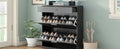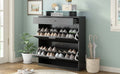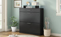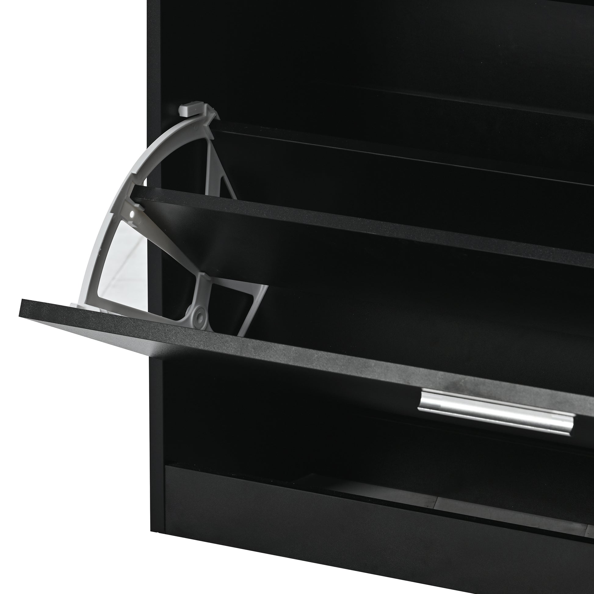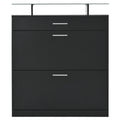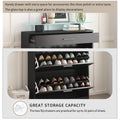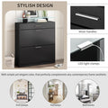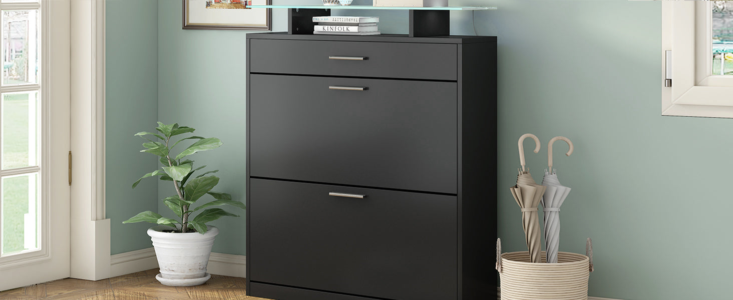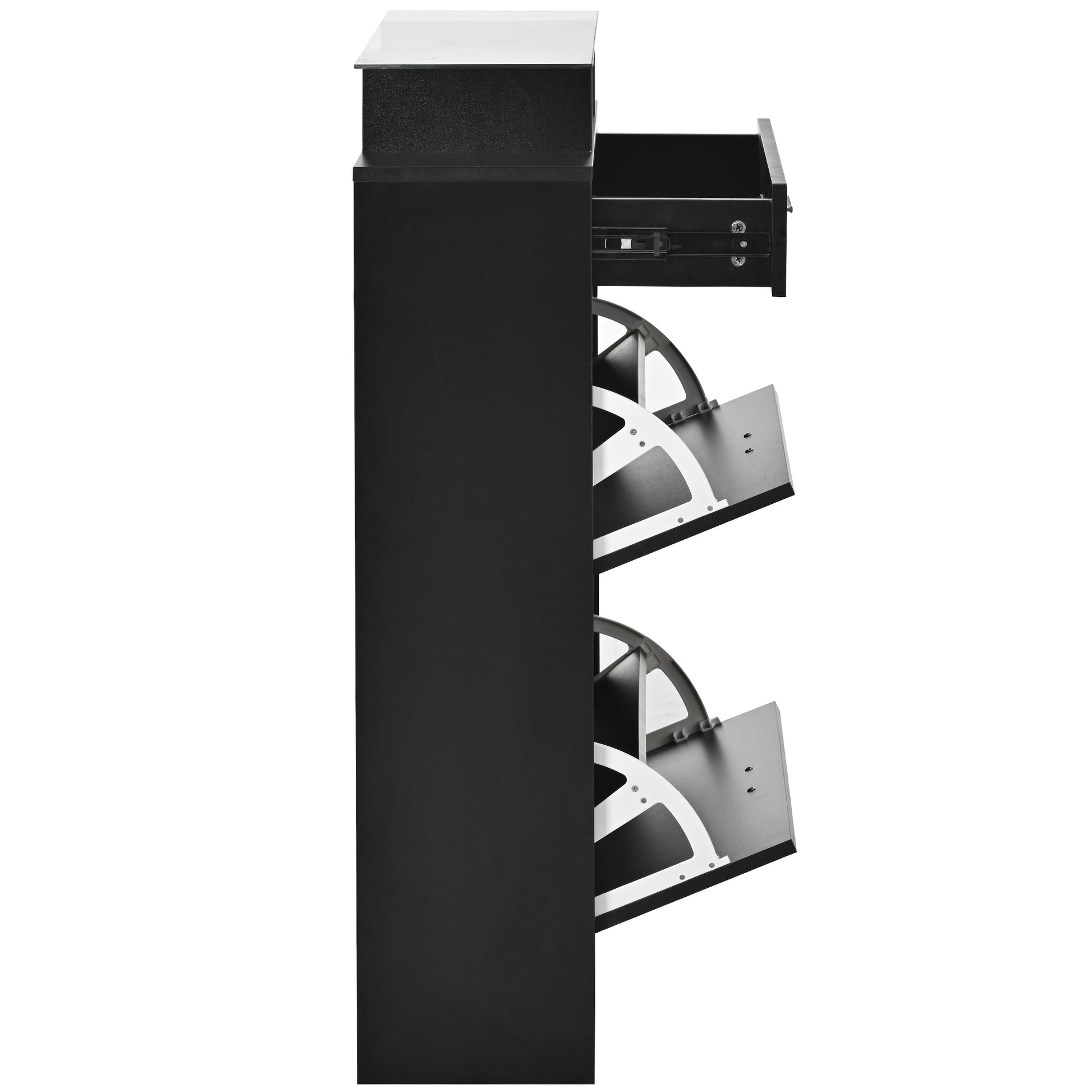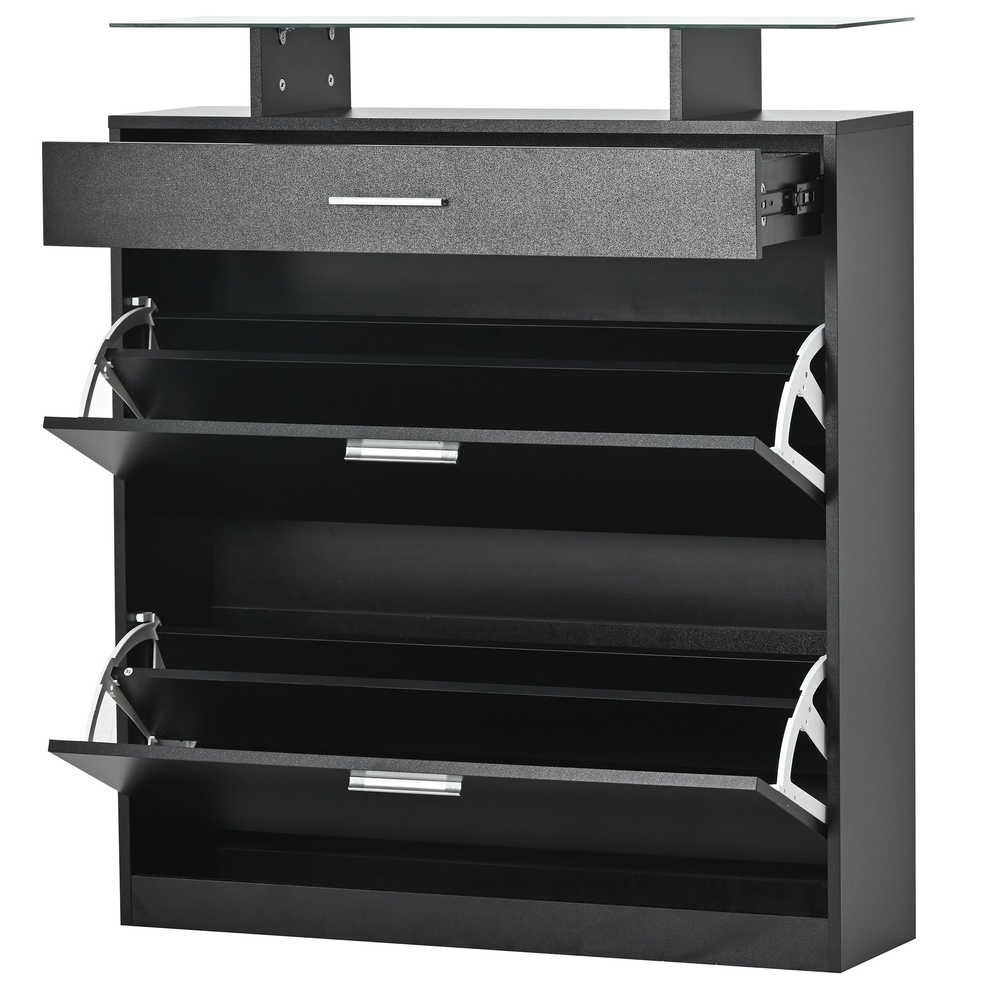 Slim Entryway Organizer With 2 Flip Drawers, Tempered Glass Top Shoe Storage Cabinet With Drawer, Free Standing Shoe Rack With Led Light For Hallway, Black Square 3 4 Drawers Black Primary Living Space Glass Shelves Modern Particle Board