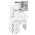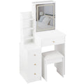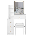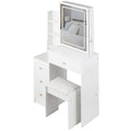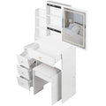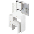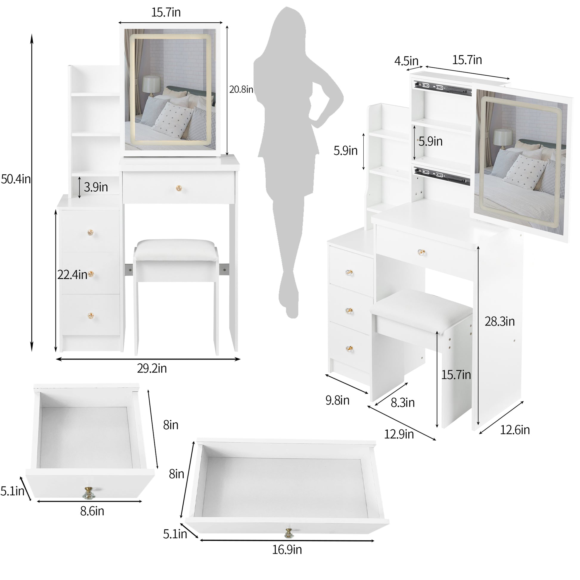 Small Size Left Bedside Cabinet Vanity Table Cushioned Stool, Touch Control Sliding Led Mirror, Tri Color Switching, Brightness Adjust, Multi Layer, Suitable For Small Space, Epa,Gcc,Ul Certificate