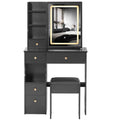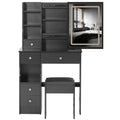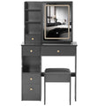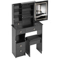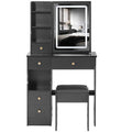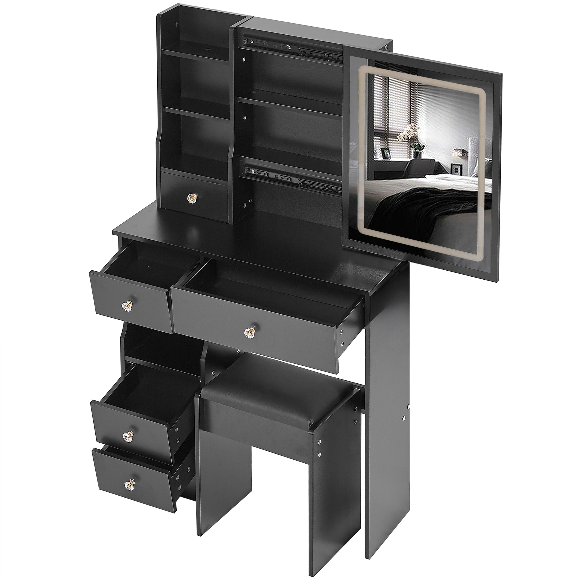 Small Size Left Drawer Desktop Vanity Table Cushioned Stool, Touch Control Sliding Led Mirror, Tri Color Switching, Brightness Adjust, Multi Layer, Suitable For Small Space, Epa,Gcc,Ul Certificate