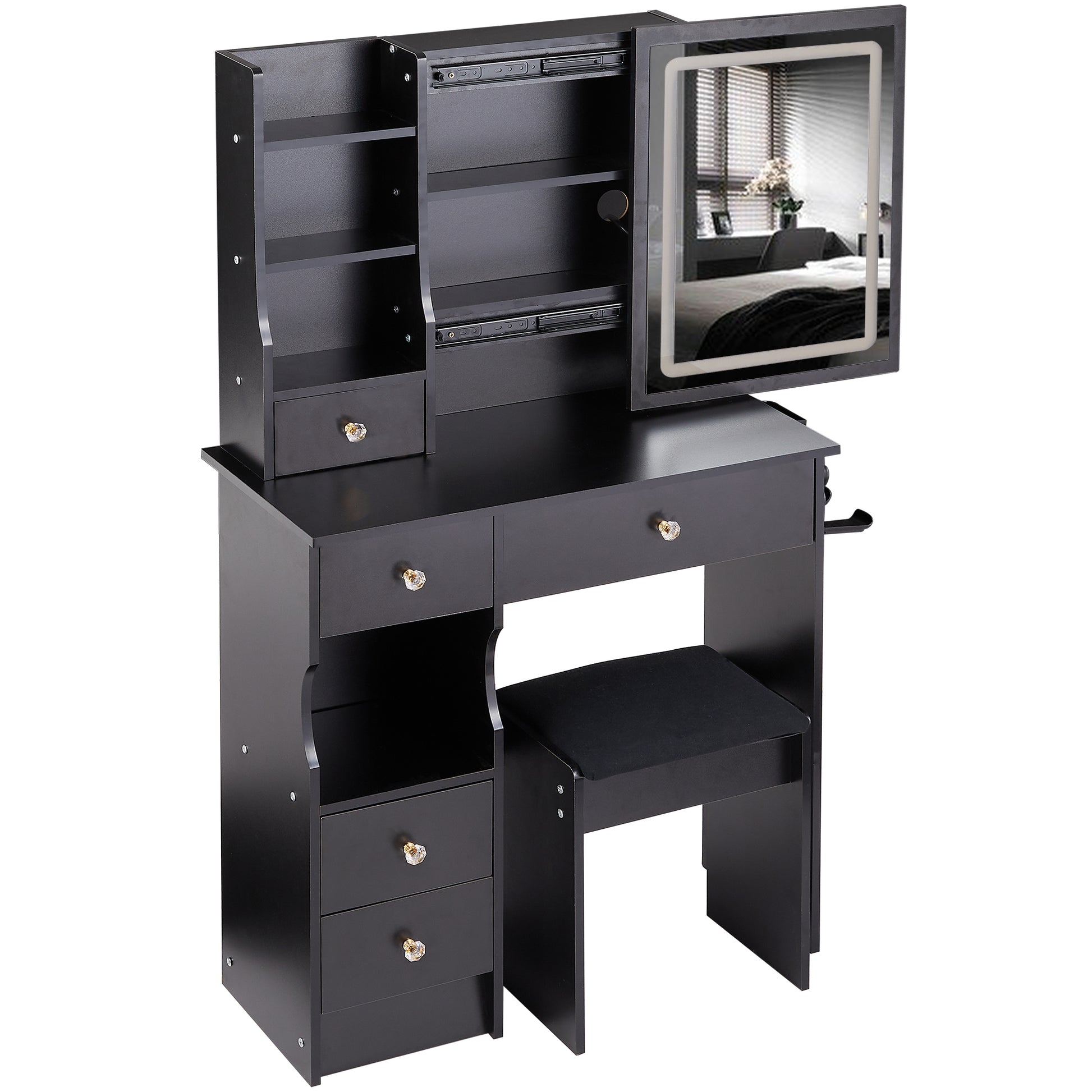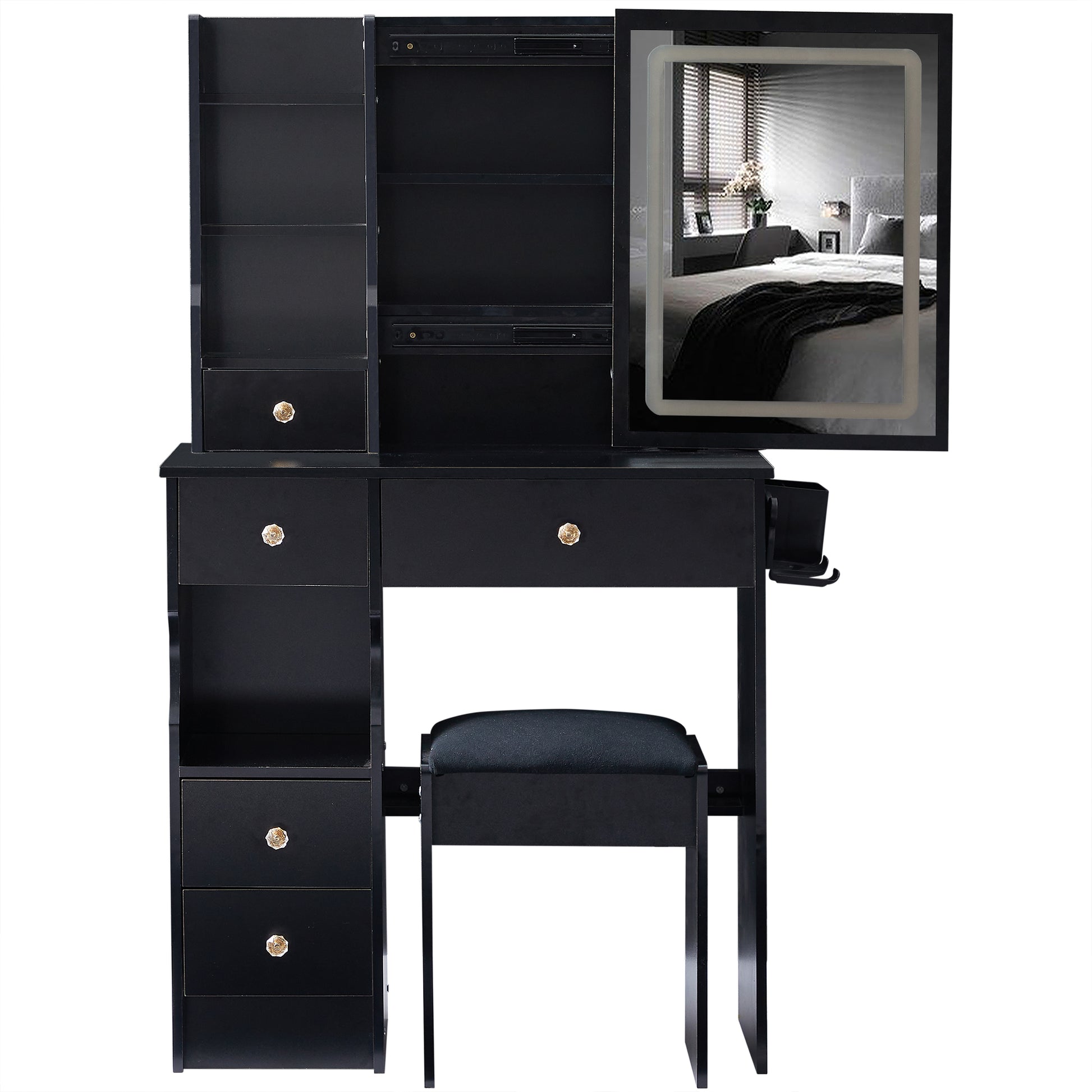 Name: Small Size Left Drawer Desktop Vanity Table + Cushioned Stool, 2 Ac+2 Usb Power Station, Hair dryer bracket, Extra Large Touch Control Sliding Led Mirror, Tri-color Switching, Epa,gcc,ul Certificate