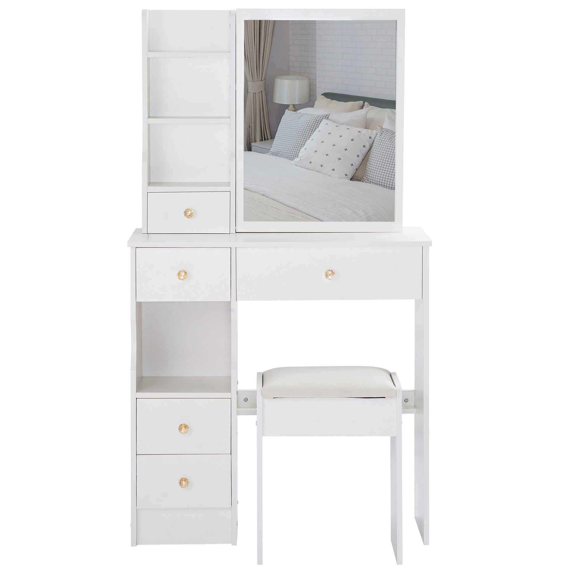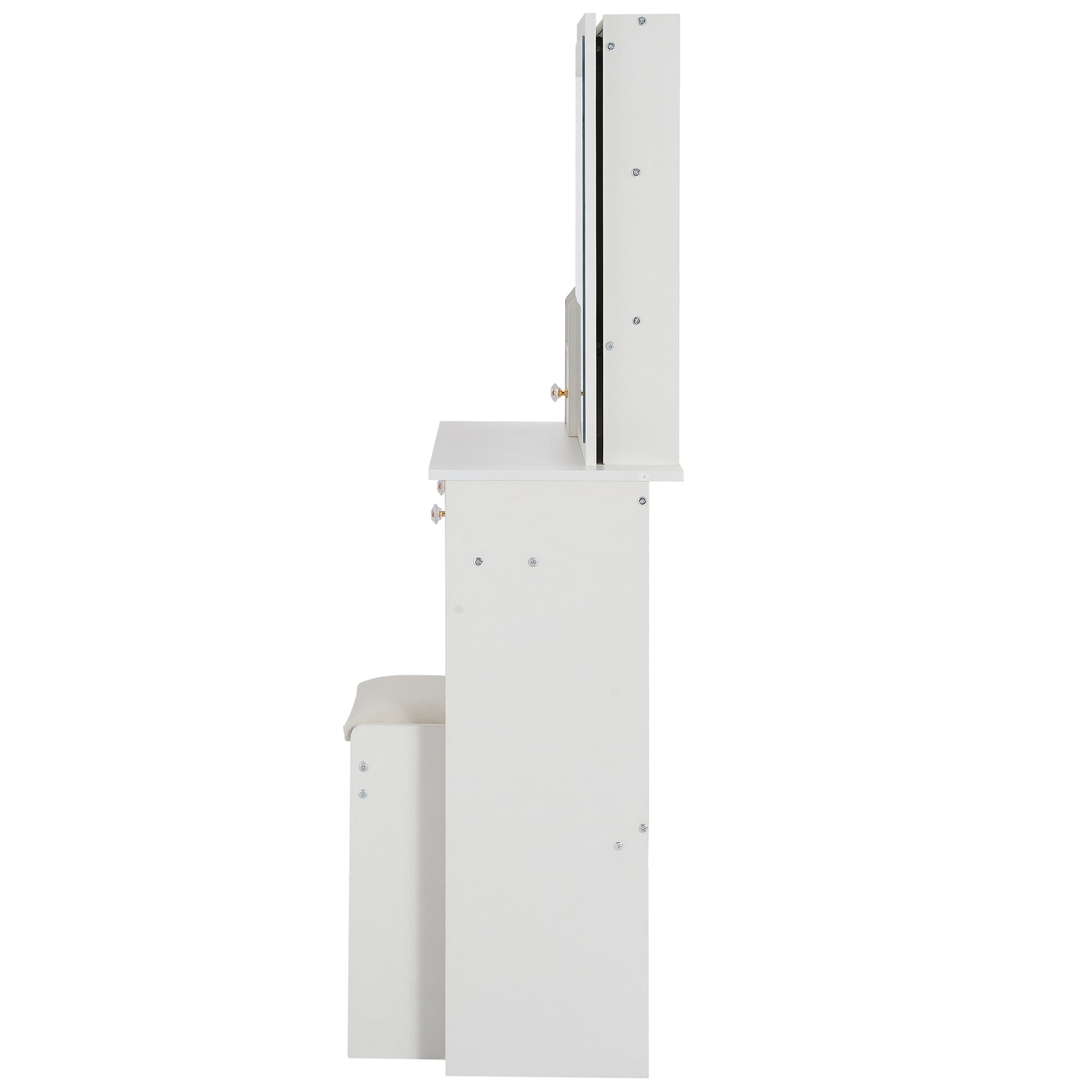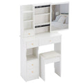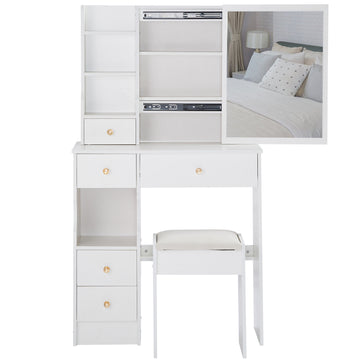 Small Size Left Drawer Desktop Vanity Table Cushioned Stool, Extra Large Sliding Mirror, Multi Layer, High Capacity Storage Fashionable Dresser, Suitable For Small Space, Epa,Gcc,Ul Certificate
