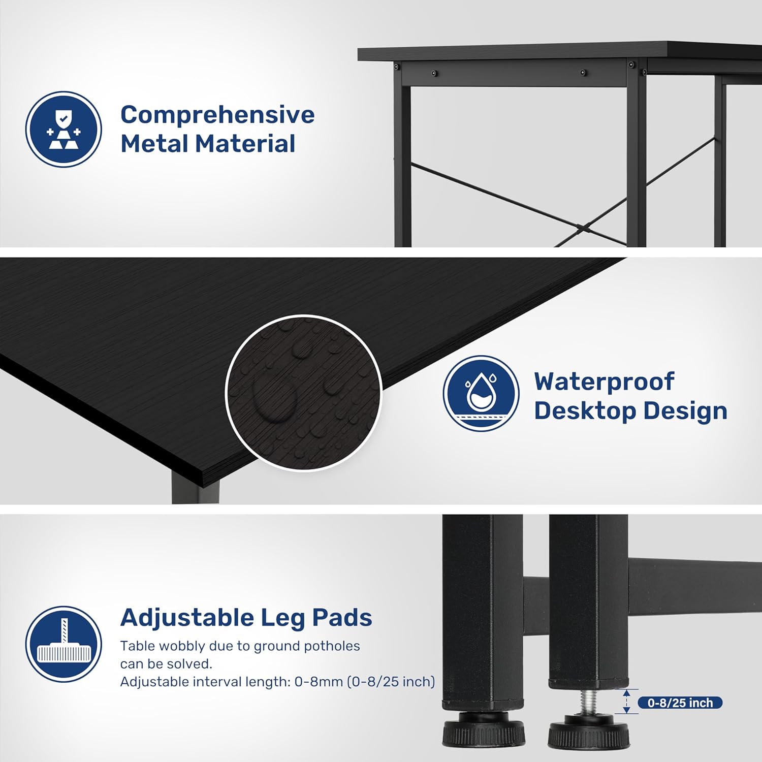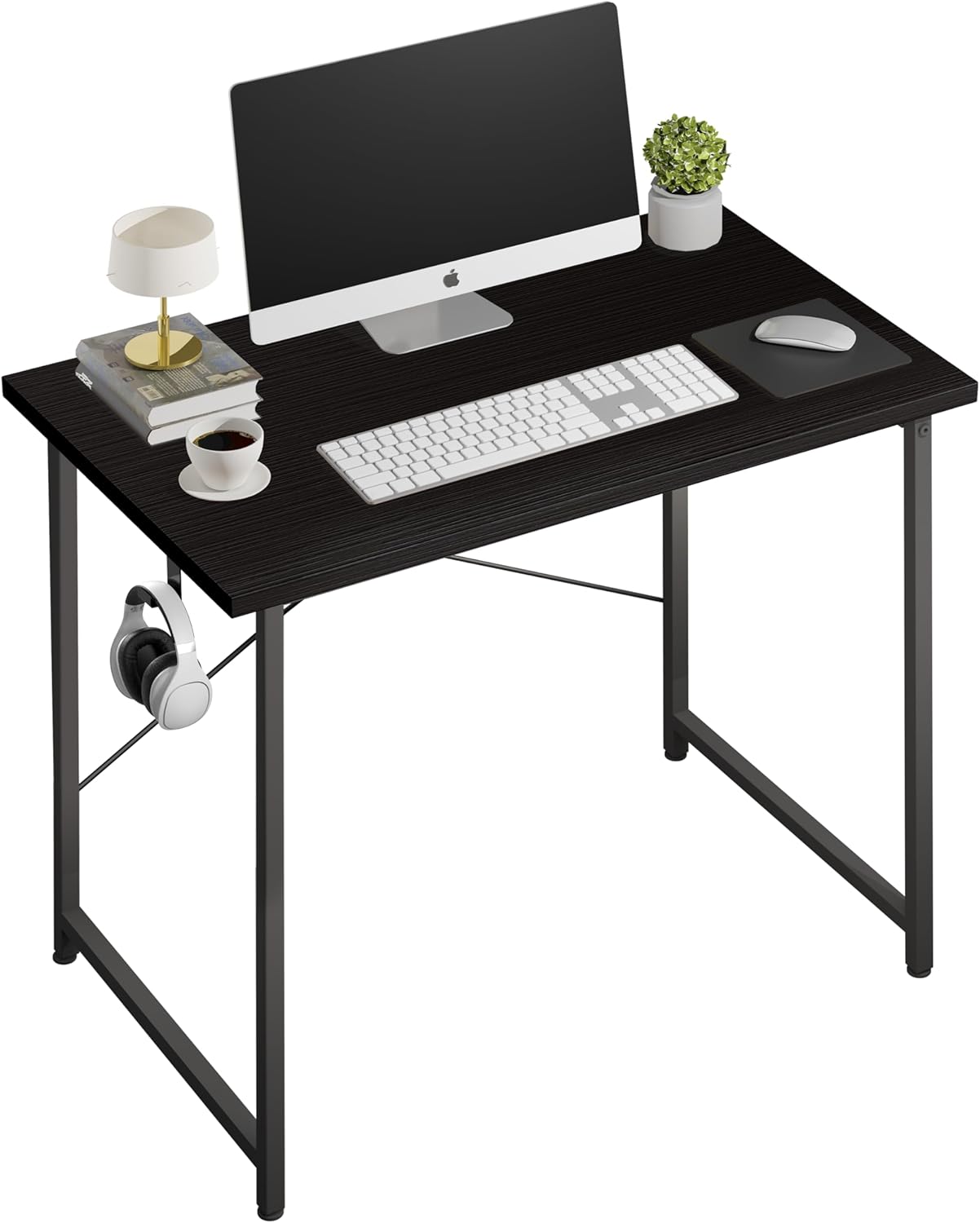 Small Space Writing Desk With Headphone Hooks Modern Simple Design, Suitable For Study, Home Office And Children'S Room, 32 Inch, Black Black Wood