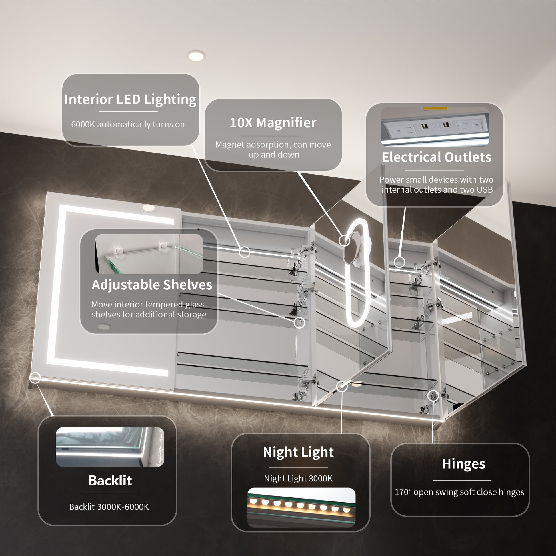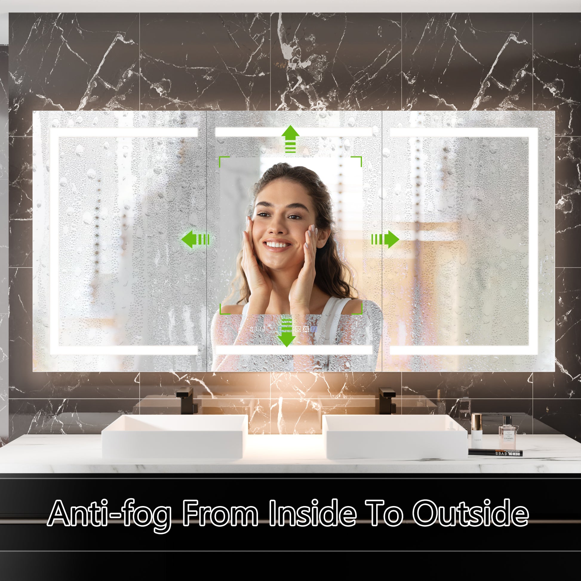 Smart Led Medicine Cabinet With Gfci Outlet & Blum Hinges, Buil Built In High Power Outlet ,72*36 Inchstepless Dimming & Anti Fog,Integrated Design,Multifunctional Bathroom Storage Silver Aluminium
