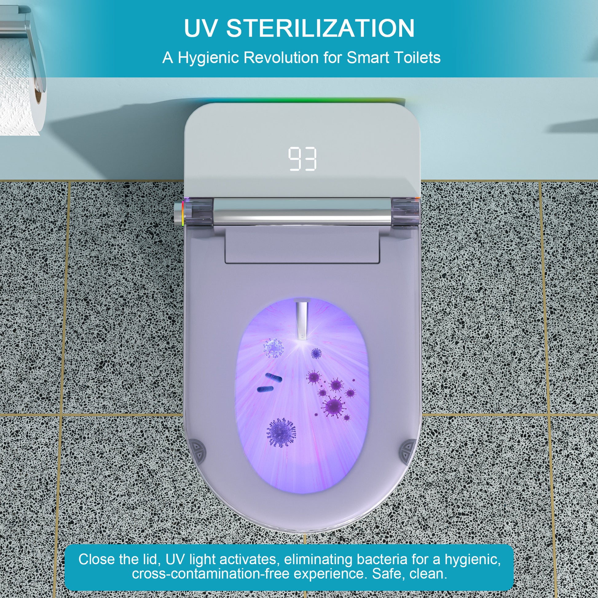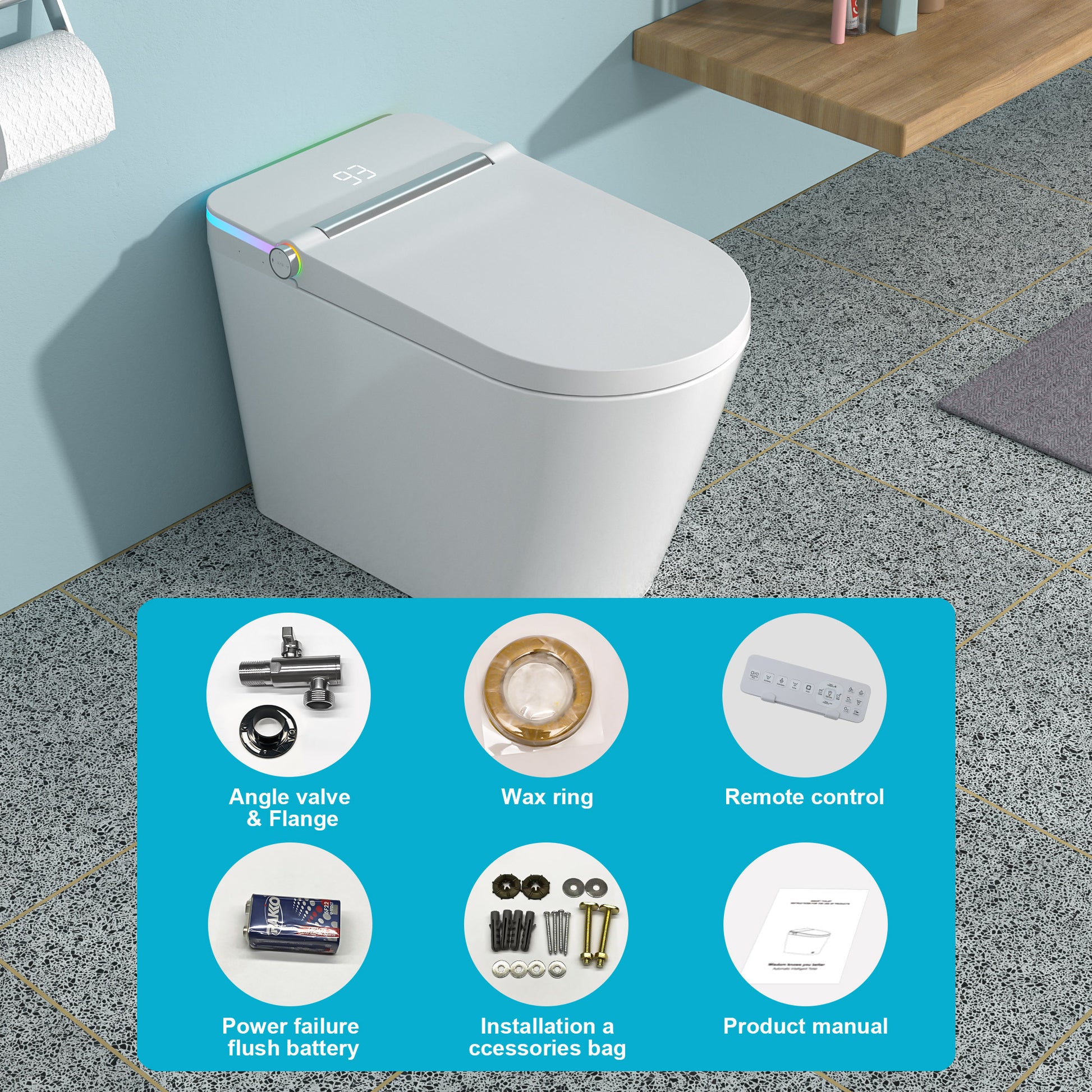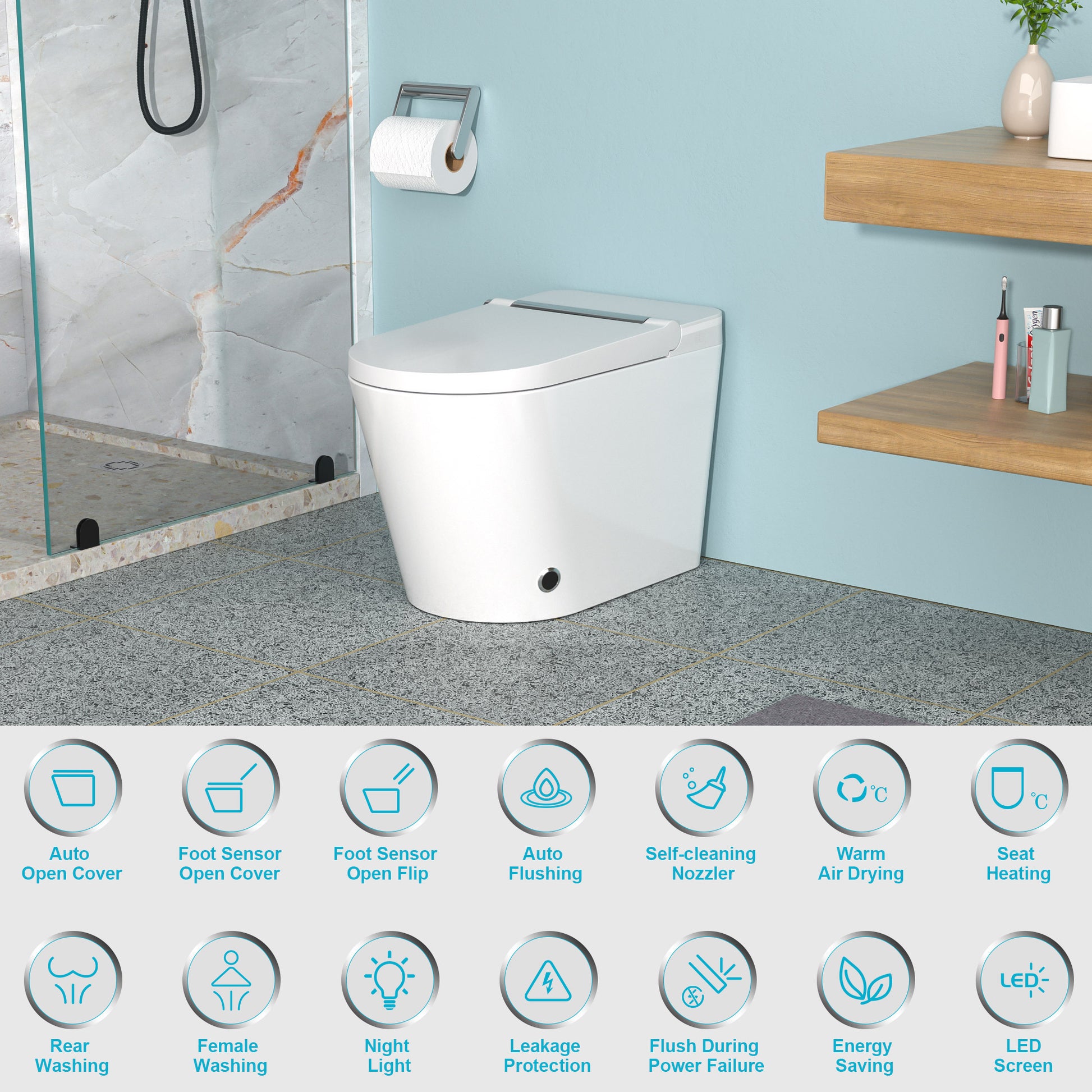 Smart Toilet With Bidet Built In, Auto Open & Close, Elongated Heated Seat, Foot Sensor Flush, Led Display, Warm Water Wash, Dryer, Night Light White Ceramic