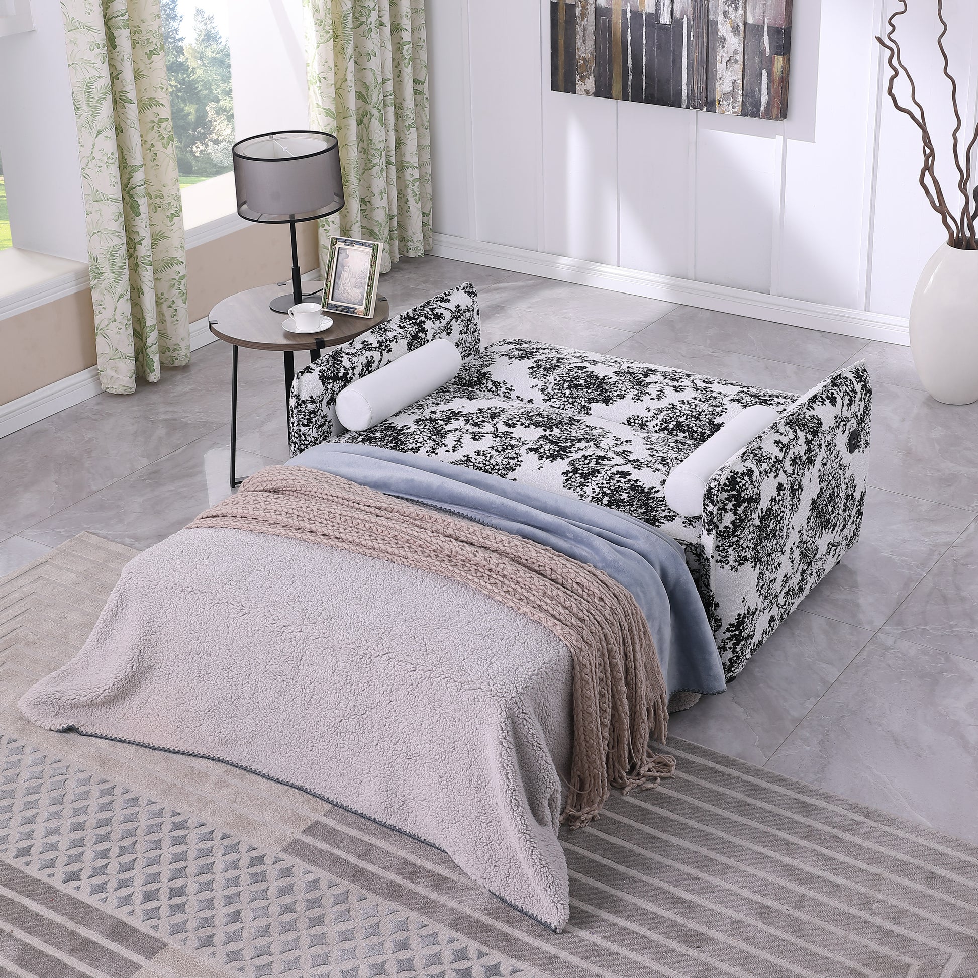 Soft Boucle Convertible Two Bedroom Sofa With Adjustable Back, 2 Seater Sofa, Pull Out Bed, 2 Waist Pillows For Small Living Rooms And Apartments White Black Foam Fabric 2 Seat
