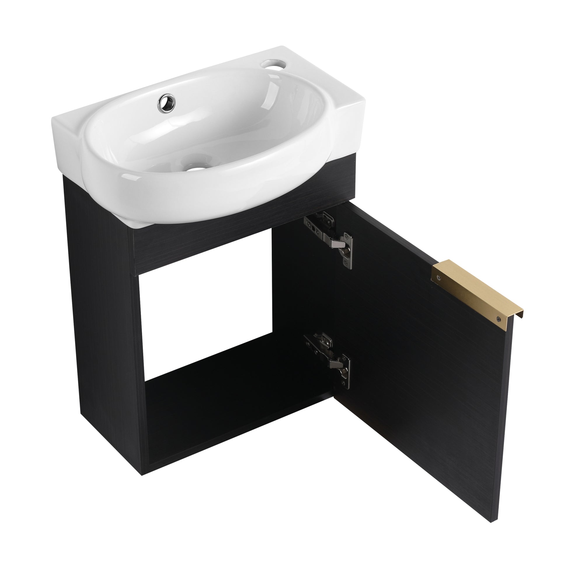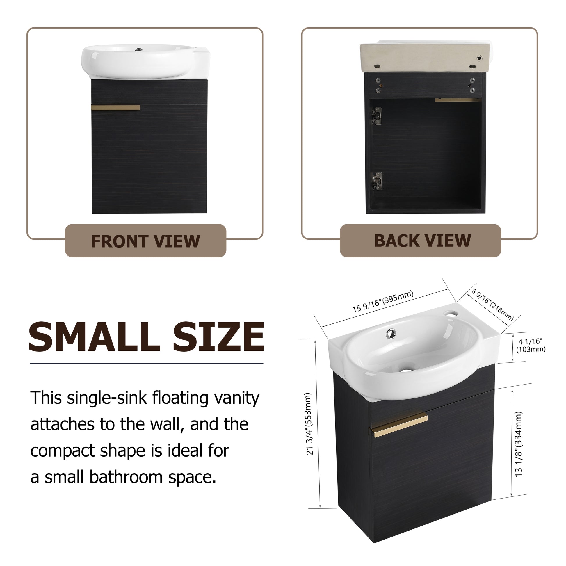 Soft Close Doors Bathroom Vanity With Sink,16 Inch For Small Bathroom Black Chestnut 1 Bathroom Wall Mounted Modern Plywood