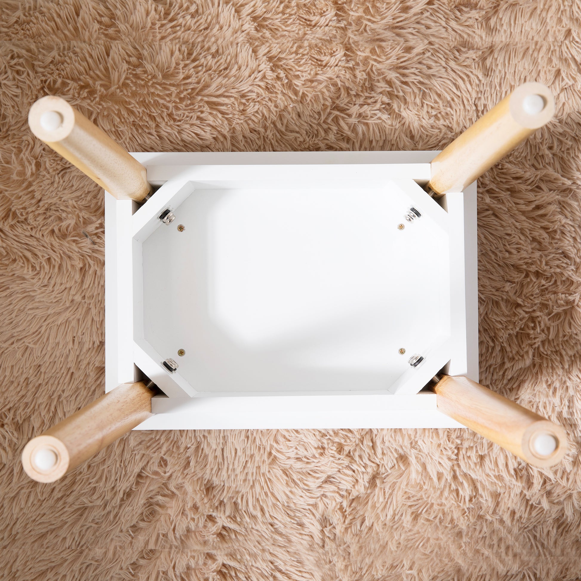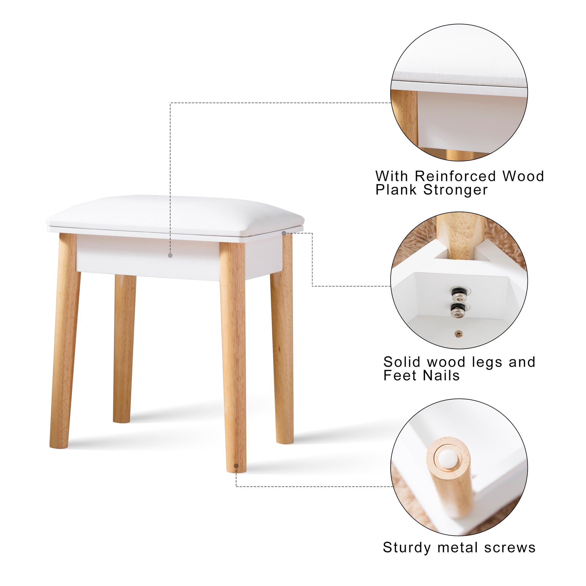 Sold Wood Vanity Table Stool,Dressing Stool For Makeup With Pu,White Finish White Solid Wood Mdf