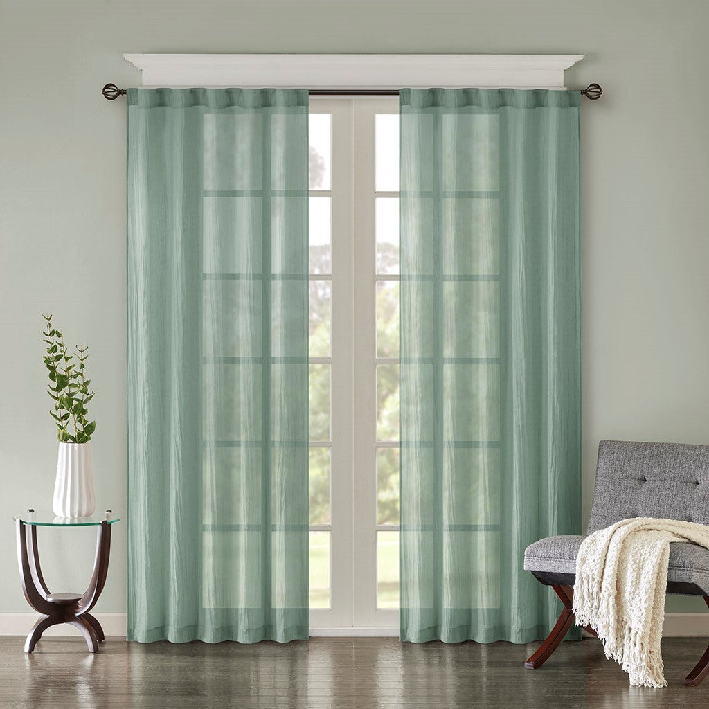 Solid Crushed Curtain Panel Pair 2 Pcs Window Panels Aqua Polyester