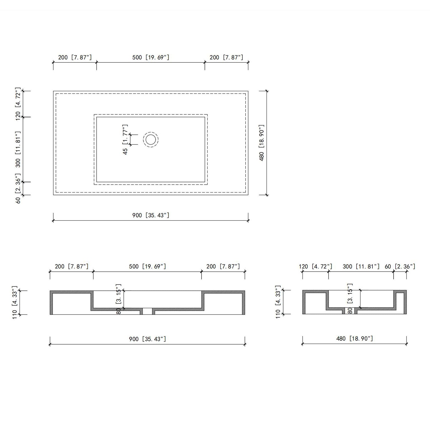 Solid Surface Single Basin White Bathroom Stainless Steel