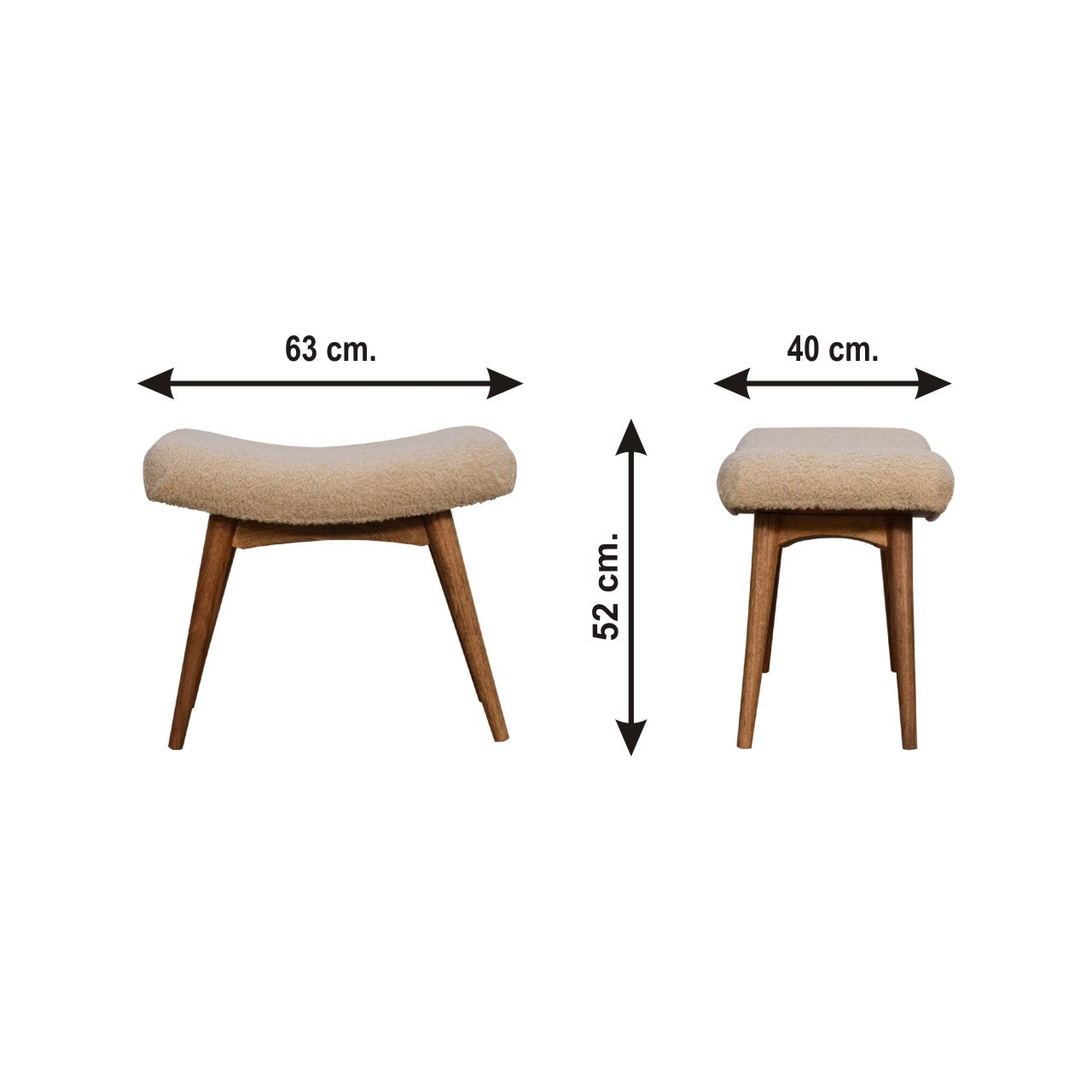 Solid Wood Boucle Cream Curved Bench Beige Cream Light Brown Cotton Wood Cotton Or Cotton Blend Primary Living Space Beige Modern Mango Boucle,Cotton,Solid Wood,Upholstered