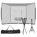 Soozier 17' X 5.5' Baseball Net With Strike Zone, Tee, Caddy, And Carry Bag For Pitching And Hitting, Portable Extra Large Softball And Baseball Training Equipment Black Steel