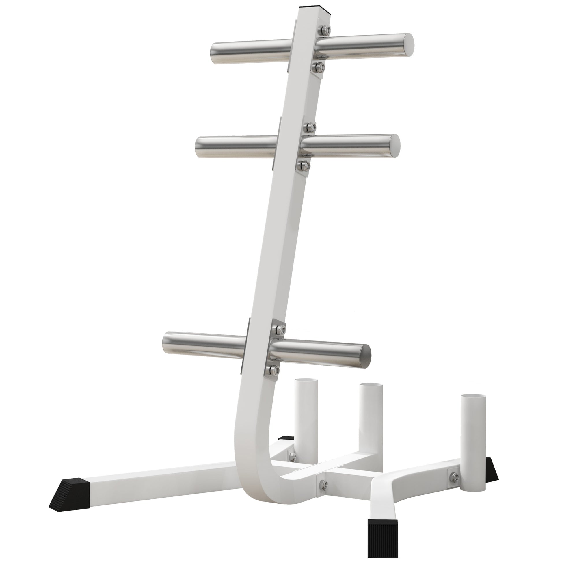 Soozier 2 Inch Weight Rack For Plates And 3 Bars, Olympic Weight Tree Bumper Plate Storage Holder, 660 Lbs. Capacity, White White Steel
