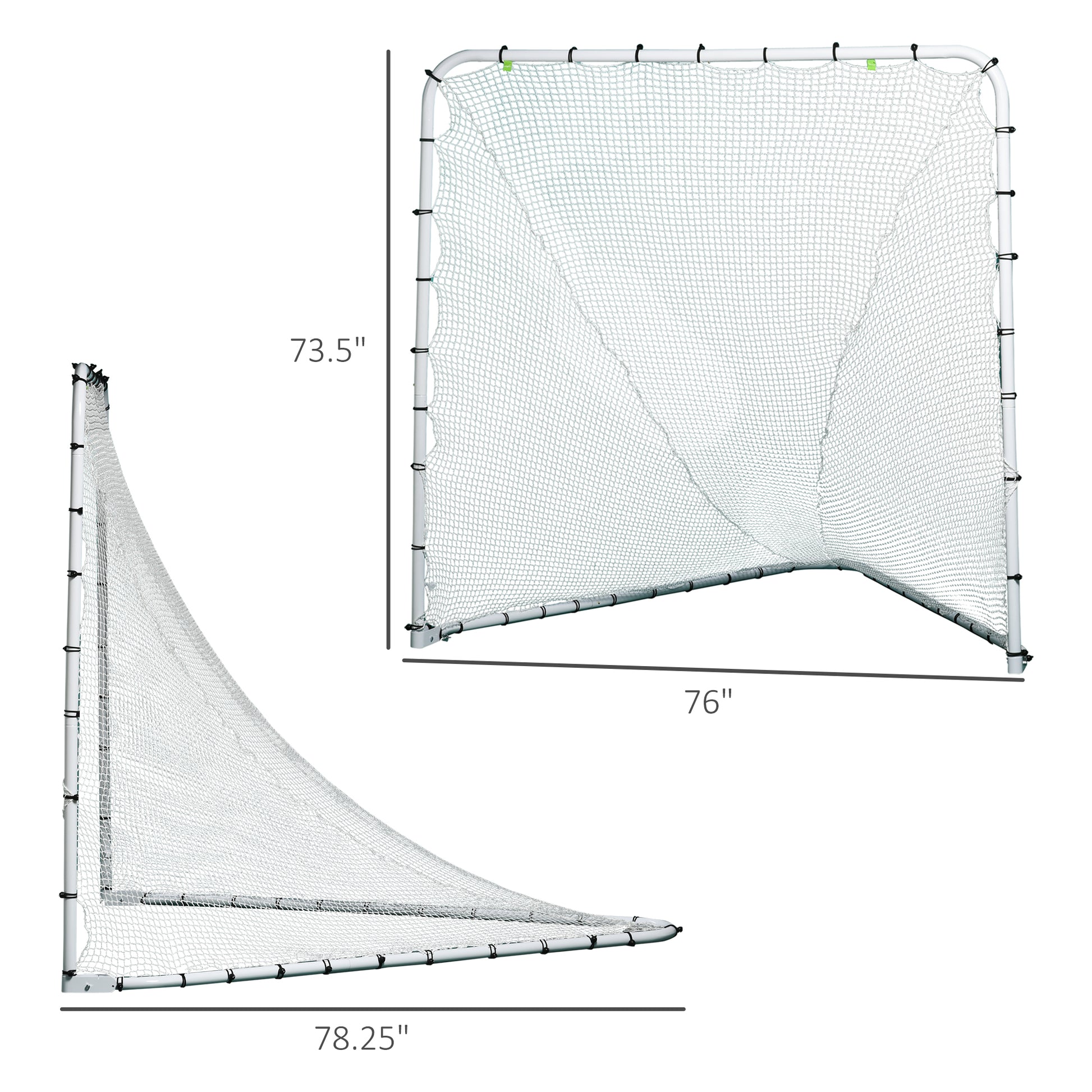 Soozier 6' X 6' Folding Lacrosse Goal, Backyard Lacrosse Net With Steel Frame, Soccer & Lacrosse Training Equipment For Kids, Youth, Adults White Steel