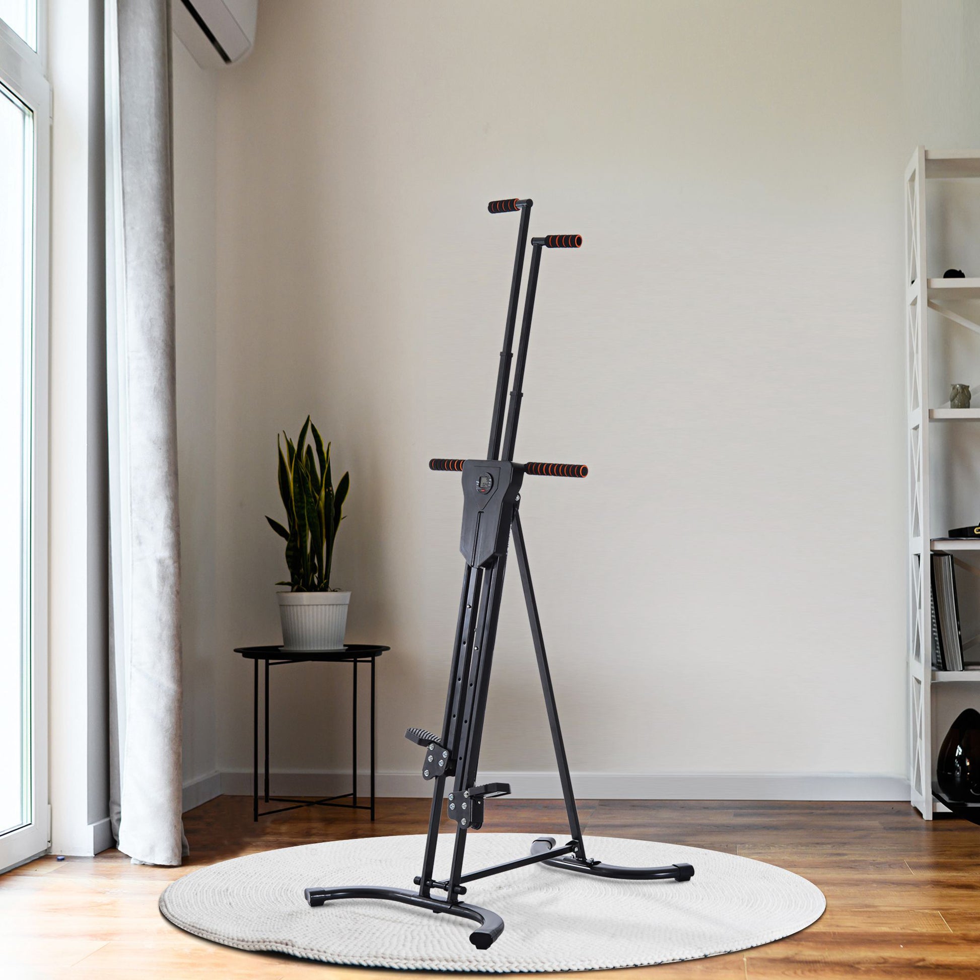 Soozier Vertical Climber, High Intensity Cardio & Muscle Toning Exercise For Home Gym, Folding Steel, Adjustable Height, Display Monitor, 220 Lbs. Weight Capacity, Black Black Steel