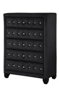 Sophia Modern Style Crystal Tufted Upholstery 5 Drawer Chest Finished With Velvet Fabric Made With Wood In Black Gray Bedroom Contemporary,Modern Solid Wood Mdf Wood