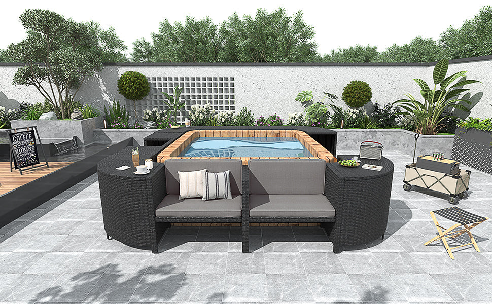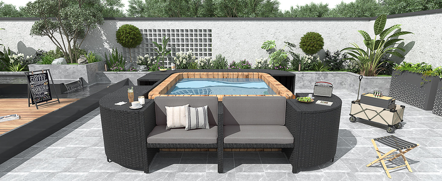 Spa Surround Spa Frame Quadrilateral Outdoor Rattan Sectional Sofa Set With Mini Sofa, Wooden Seats And Storage Spaces, Grey Yes Grey Water Resistant Frame Water Resistant Cushion Garden & Outdoor Sectional Seating Groups Foam Rattan Waterproof Fabric