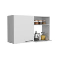 Stackable Wall Storage Cabinet 24" H, Two Internal Shelves, Two External Storage Shelves, One Door, White White Particle Board Particle Board