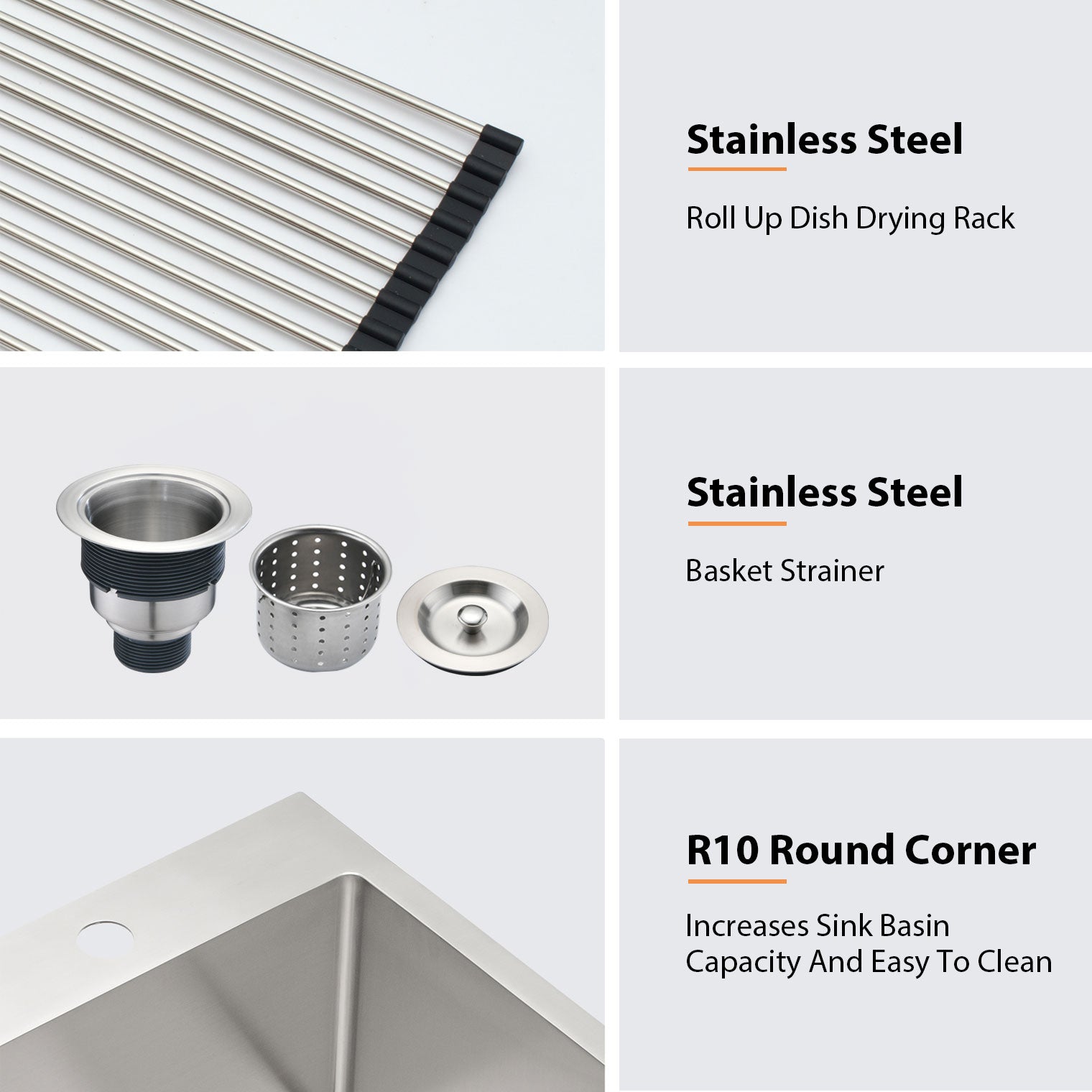 Stainless Steel 30 In 2 Hole Single Bowl Drop In Kitchen Sink With Bottom Grid And Basket Strainer Brushed Nickel Stainless Steel