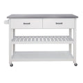 Stainless Steel Table Top White Kicthen Cart With Two Drawers White Mdf