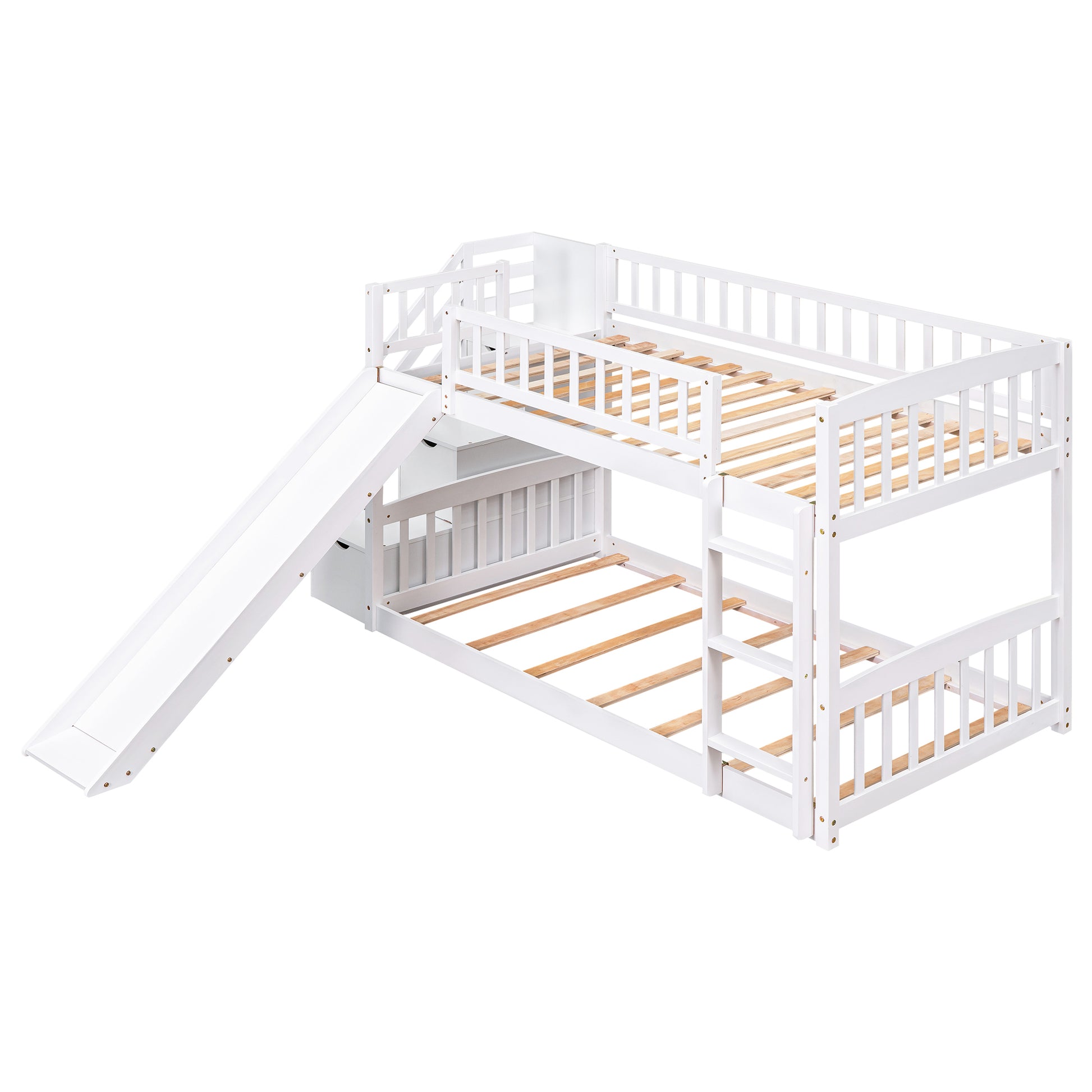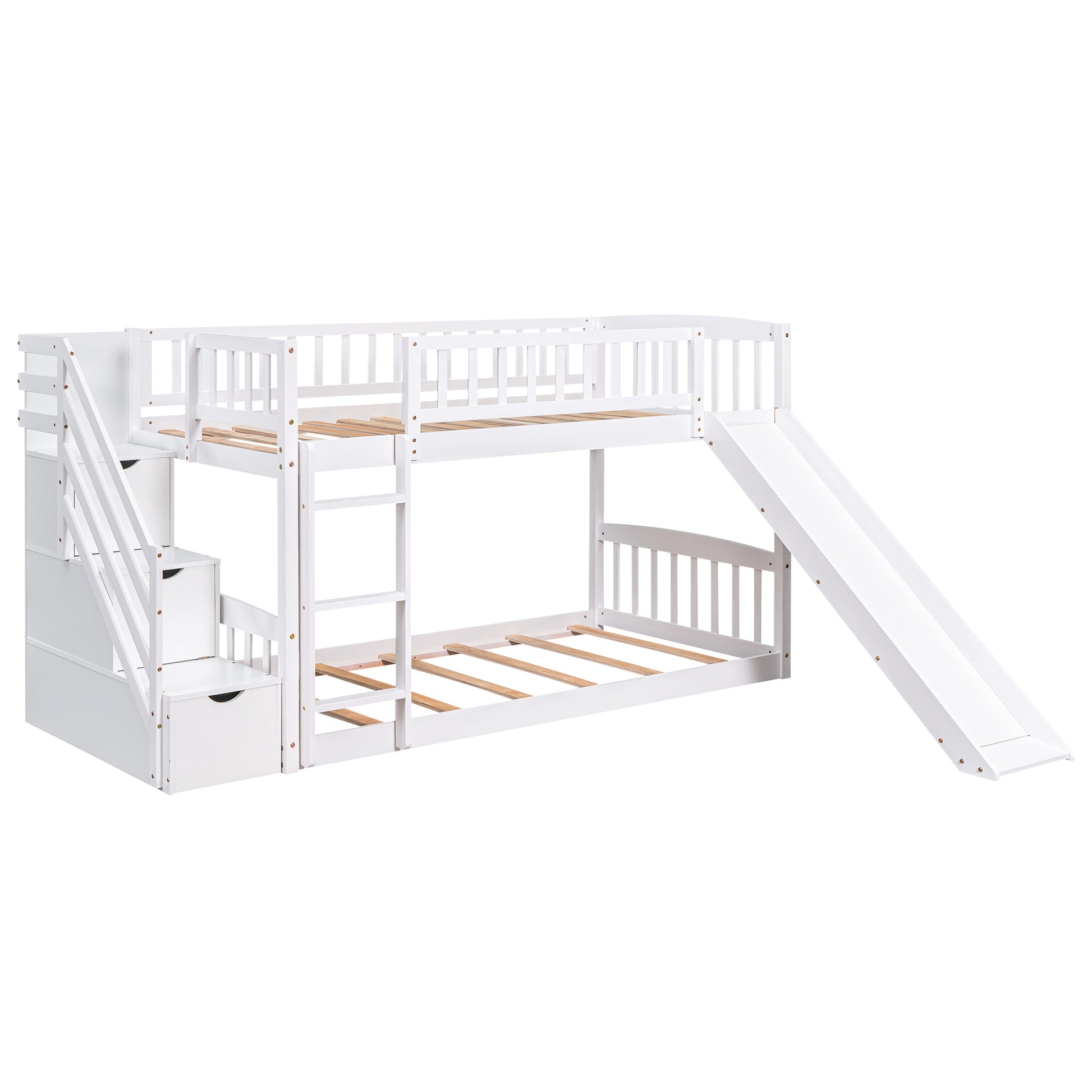 Stairway Twin Over Twin Bunk Bed With Two Drawers And Slide, White Old Sku :Lt000155Aak White Solid Wood