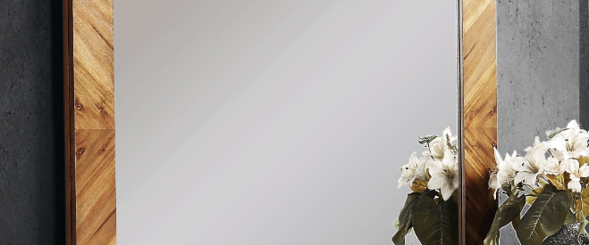 Steampunk Mirror, No Assembly Required, Chestnut Finish Brown Modern Wood