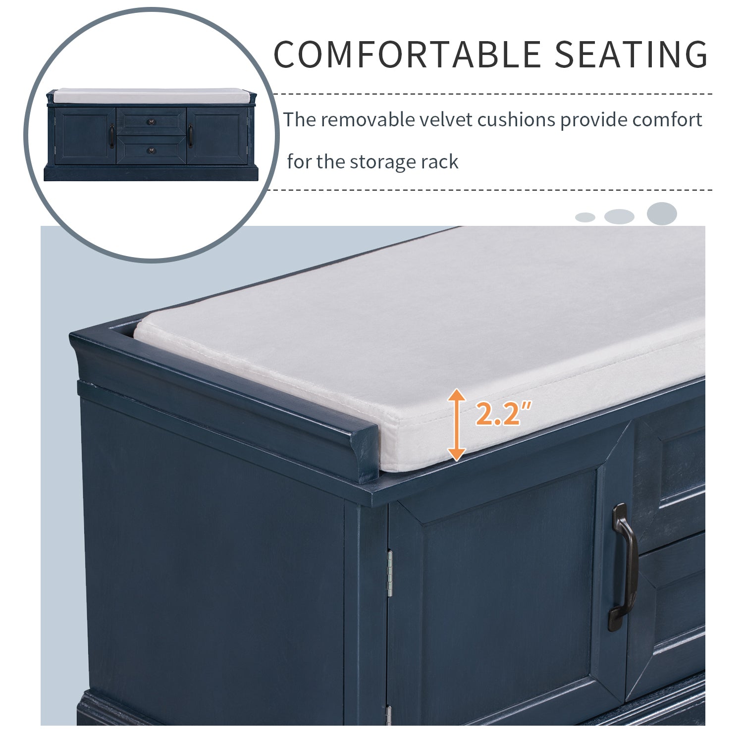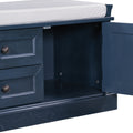 Storage Bench With 2 Drawers And 2 Cabinets, Shoe Bench With Removable Cushion For Living Room, Entryway Antique Navy Antique Navy Solid Wood