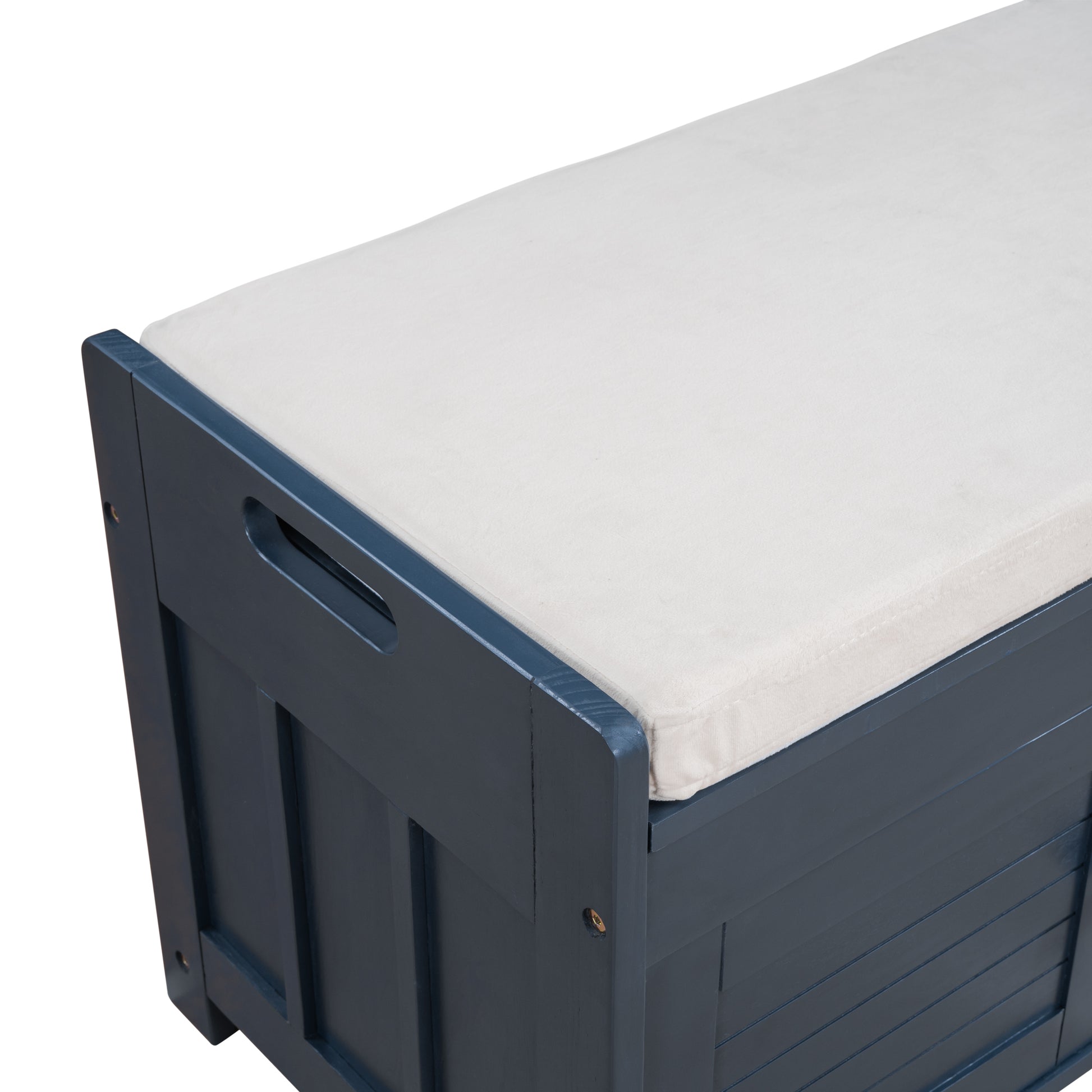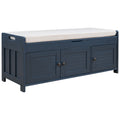 Storage Bench With 3 Shutter Shaped Doors, Shoe Bench With Removable Cushion And Hidden Storage Space Antique Navy, Old Sku: Wf284226Aam Antique Navy Mdf