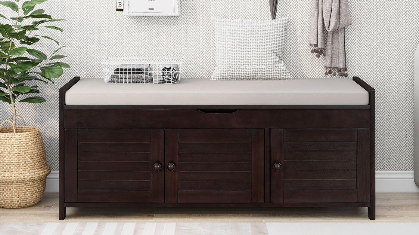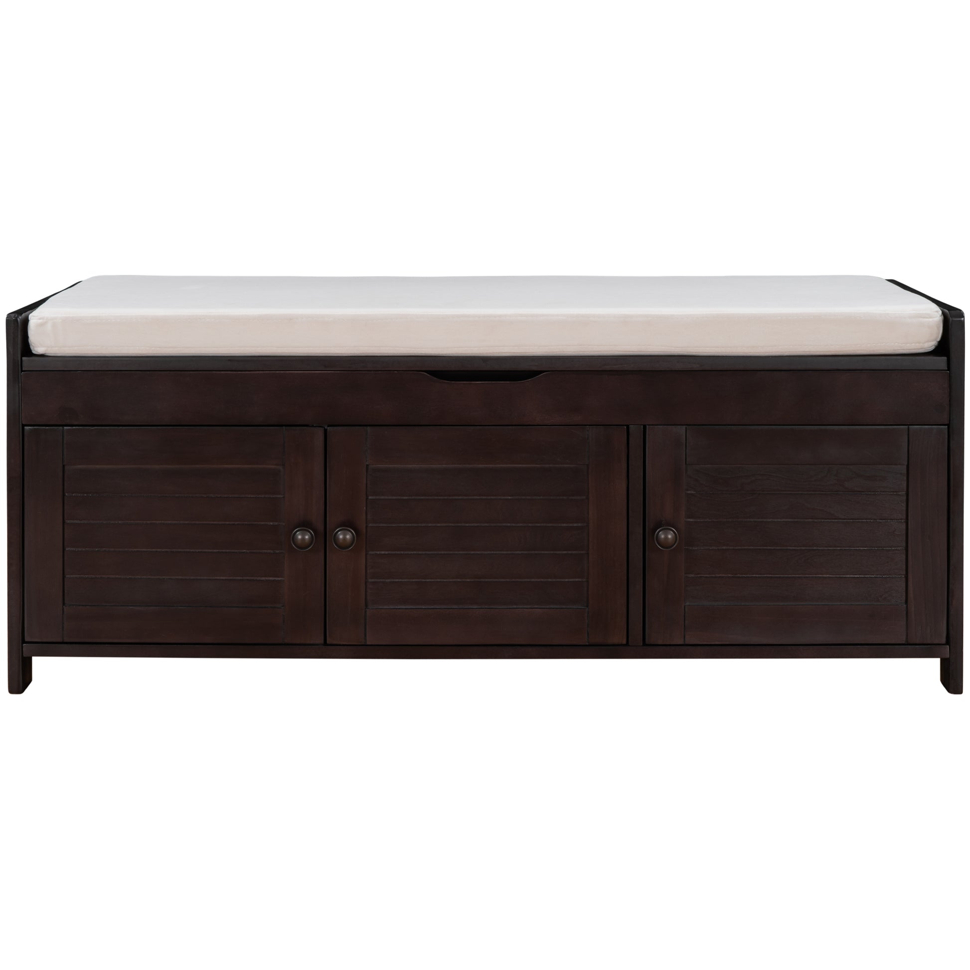 Storage Bench With 3 Shutter Shaped Doors, Shoe Bench With Removable Cushion And Hidden Storage Space Espresso, Old Sku: Wf284226Aap Espresso Mdf