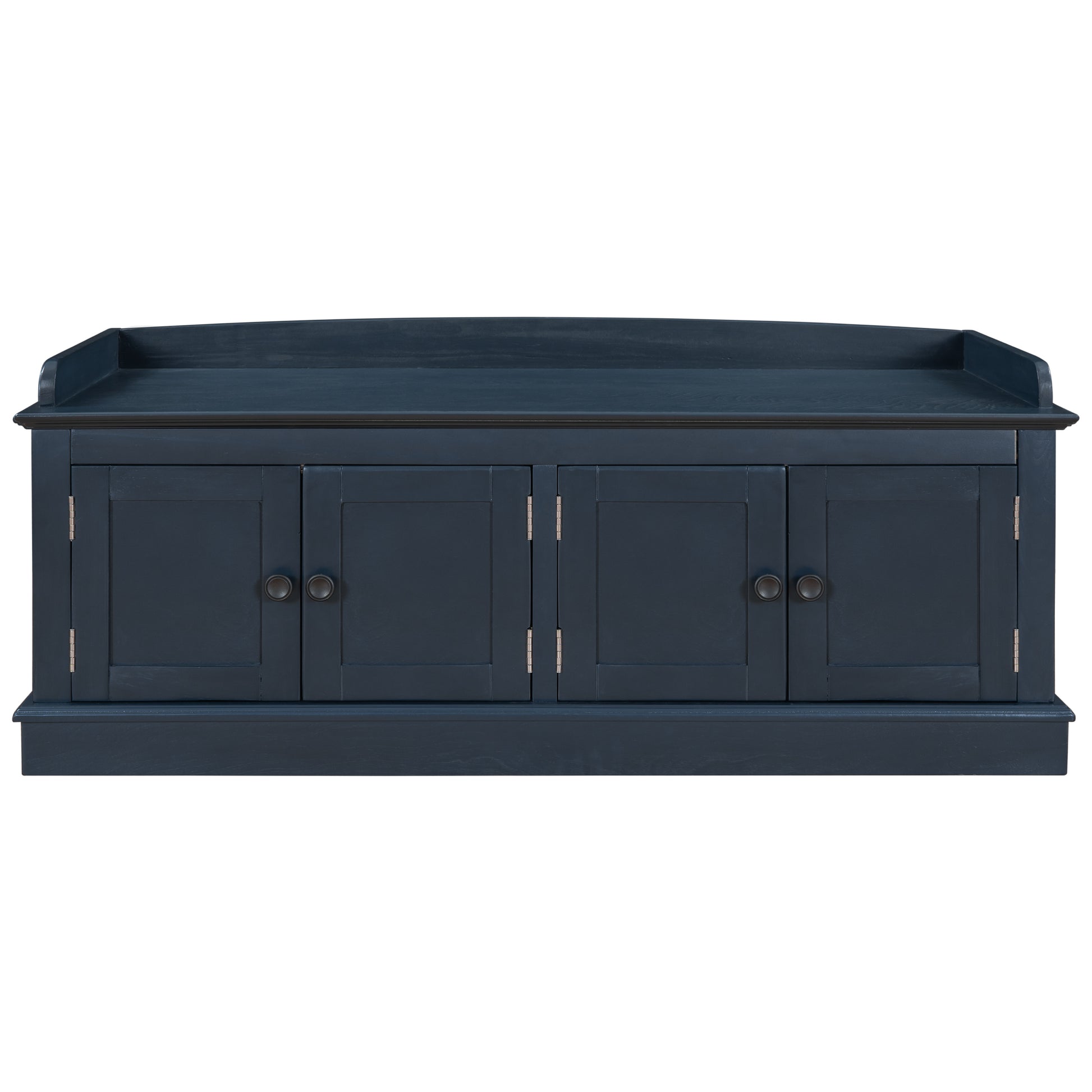 Storage Bench With 4 Doors And Adjustable Shelves, Shoe Bench With Removable Cushion For Living Room, Entryway Antique Navy Antique Navy Solid Wood
