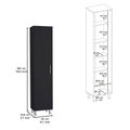 Storage Cabinet 71"H With 5 Tier Shelf, 3 Broom Hangers And Metal Hardware, Black Black Solid Wood Mdf Engineered Wood