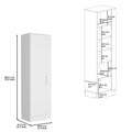 Name: Storage Cabinet 72"h, Six Internal Shelves, One Door, Three Broom Hangers, White