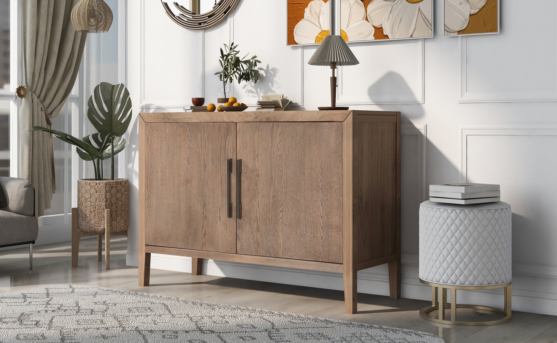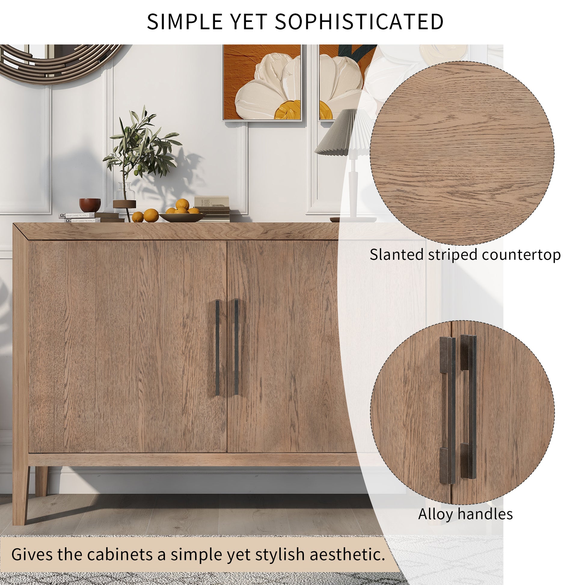 Storage Cabinet Sideboard Wooden Cabinet With 2 Metal Handles And 2 Doors For Hallway, Entryway, Living Room Beige Mdf