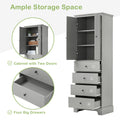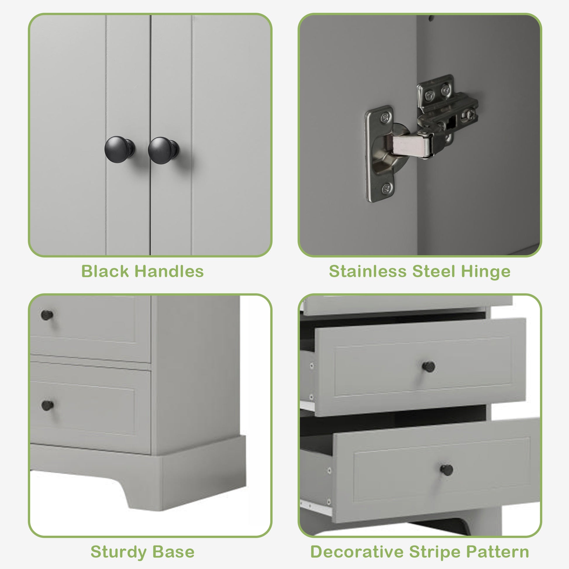 Storage Cabinet With 2 Doors And 4 Drawers For Bathroom, Office, Adjustable Shelf, Mdf Board With Painted Finish, Grey Grey Mdf
