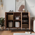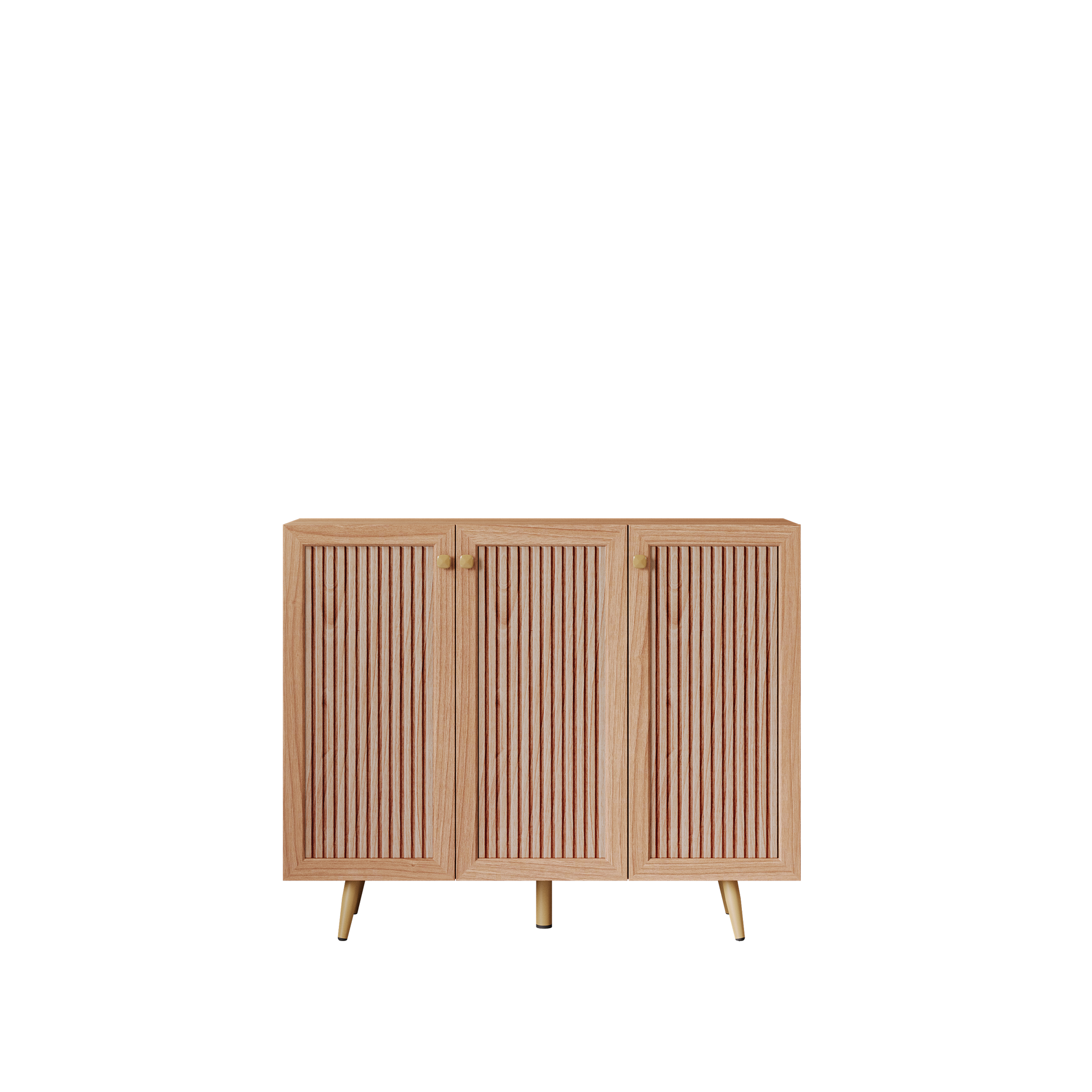 Storage Cabinet With Three Doors,Wood Sideboard Buffet Storage With Adjustable Shelf,Wood Coffee Bar Cabinet,Kitchen Buffet Cabinet Cupboard,46.85''W X 13.5''D X 38.19''H. Orange Yellow Particle