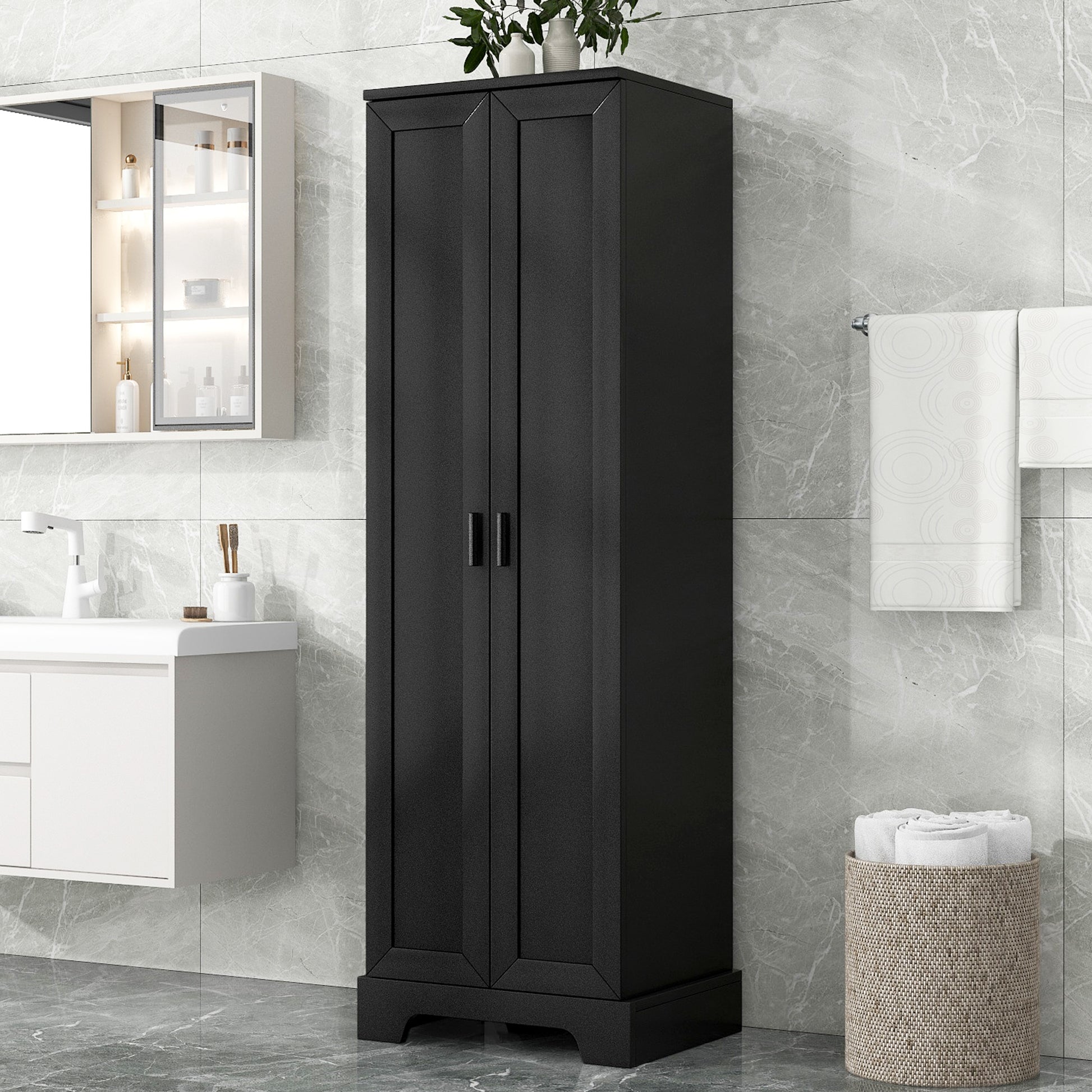 Storage Cabinet With Two Doors For Bathroom, Office, Adjustable Shelf, Mdf Board, Black Black Mdf