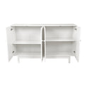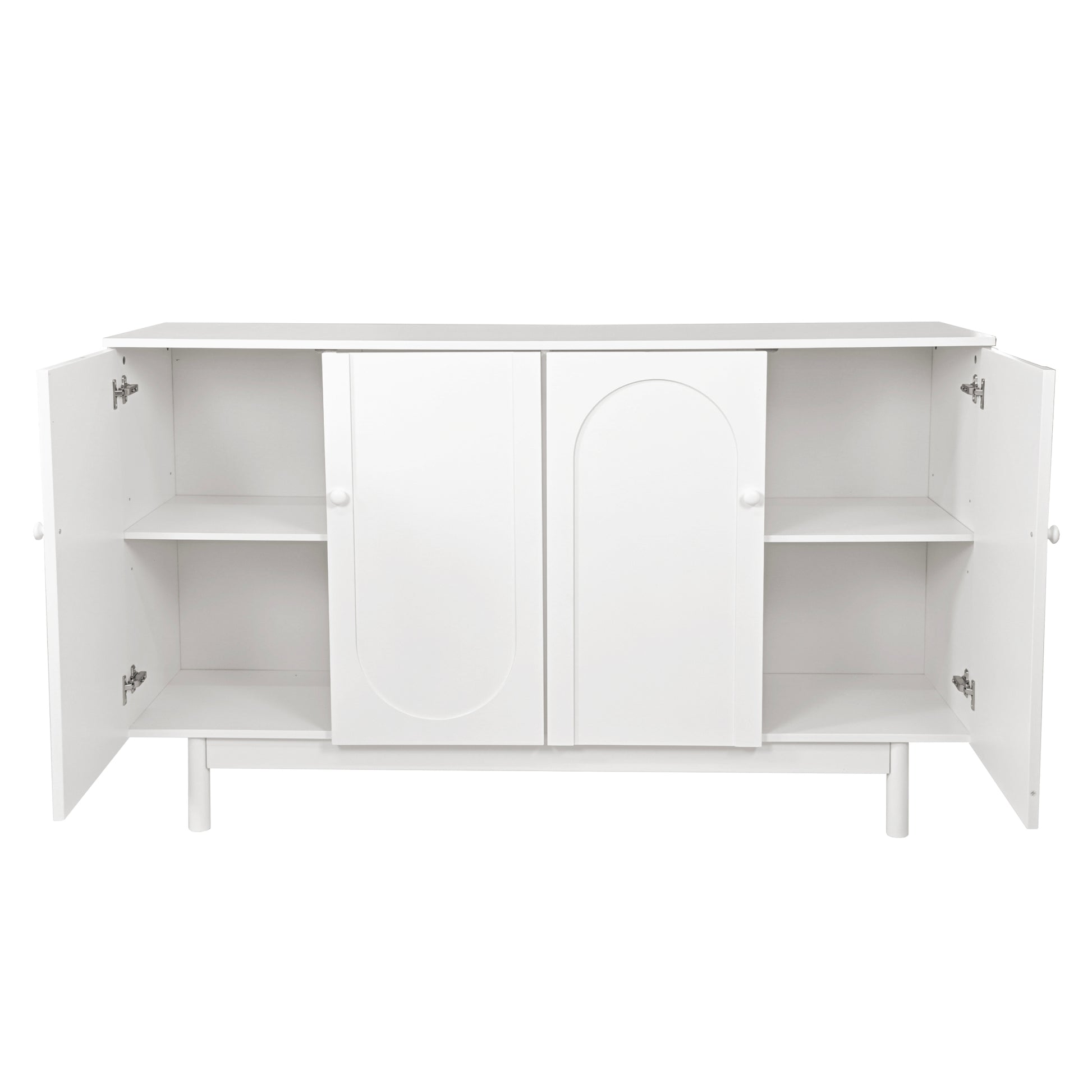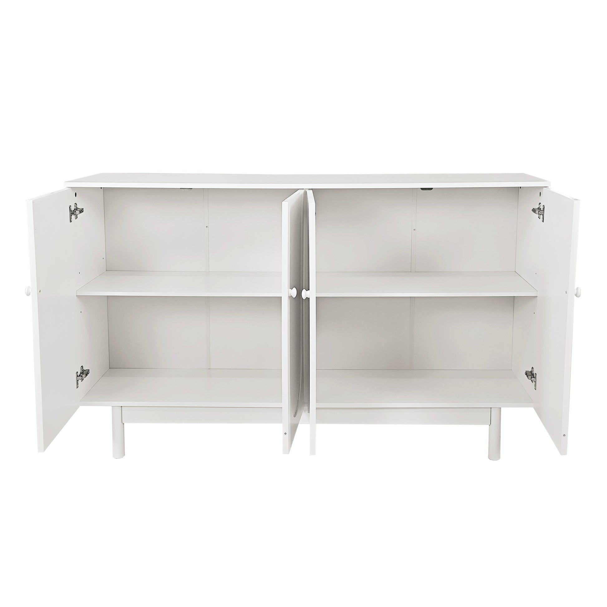 Stylish And Functional 4 Door Intaglio Storage Cabinet With Pine Legs, Solid Wood Pulls And Mdf, For Living Room Bedroom,And Kitchen,White White Mdf