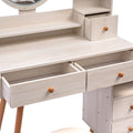 Stylish Vanity Table Cushioned Stool, Touch Control Led Mirror, Large Capacity Storage Cabinet, 5 Drawers, Fashionable Makeup Furniture, Length Adjustable L31.5" 43.2"X W15.8" X H48.1" Ameican White Oak Solid Wood Mdf