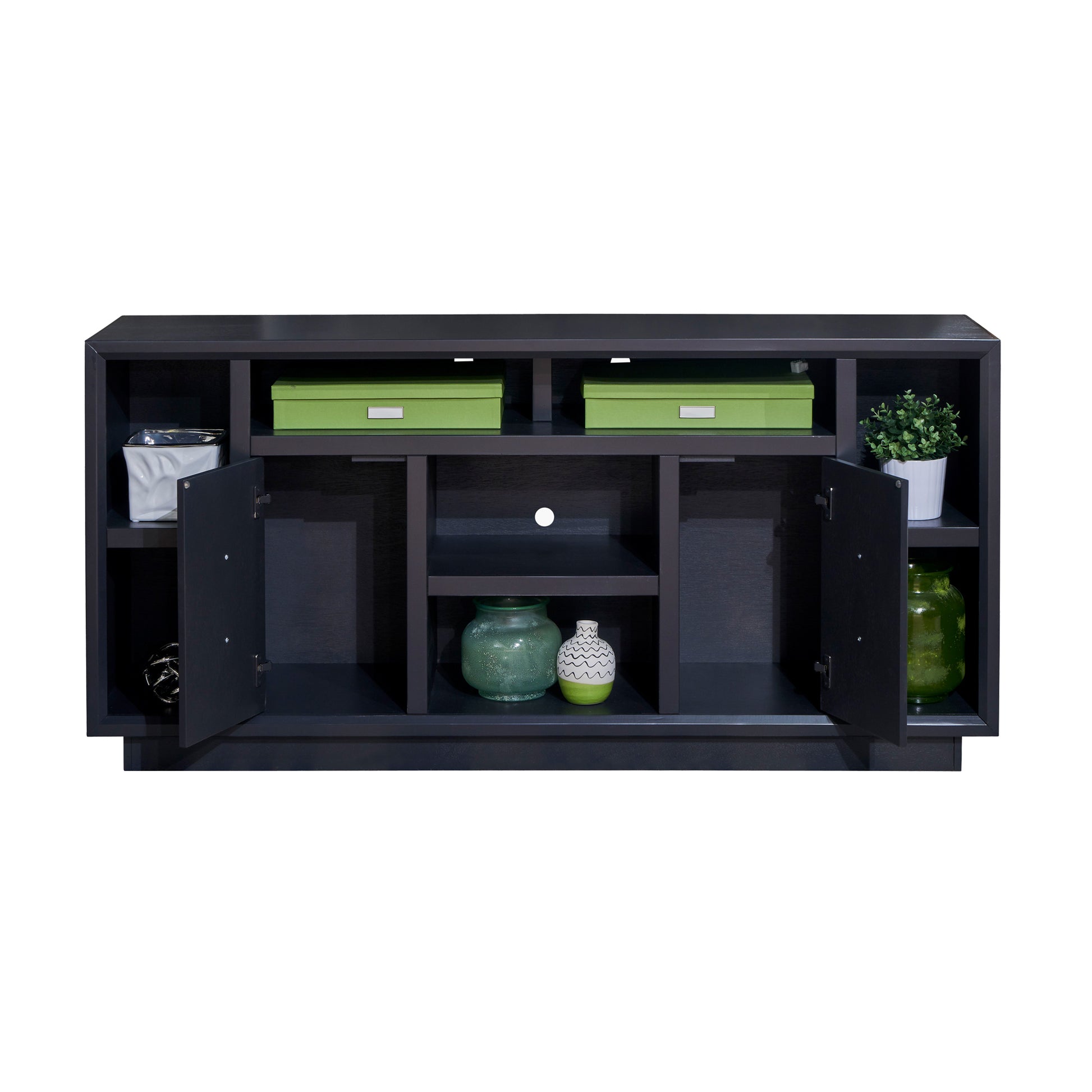 Sunset 67 Inch Tv Stand Console For Tvs Up To 80 Inches, No Assembly Required, Black Finish Black Primary Living Space 70 79 Inches 70 79 Inches Contemporary,Modern Poplar 75 Inches Wood